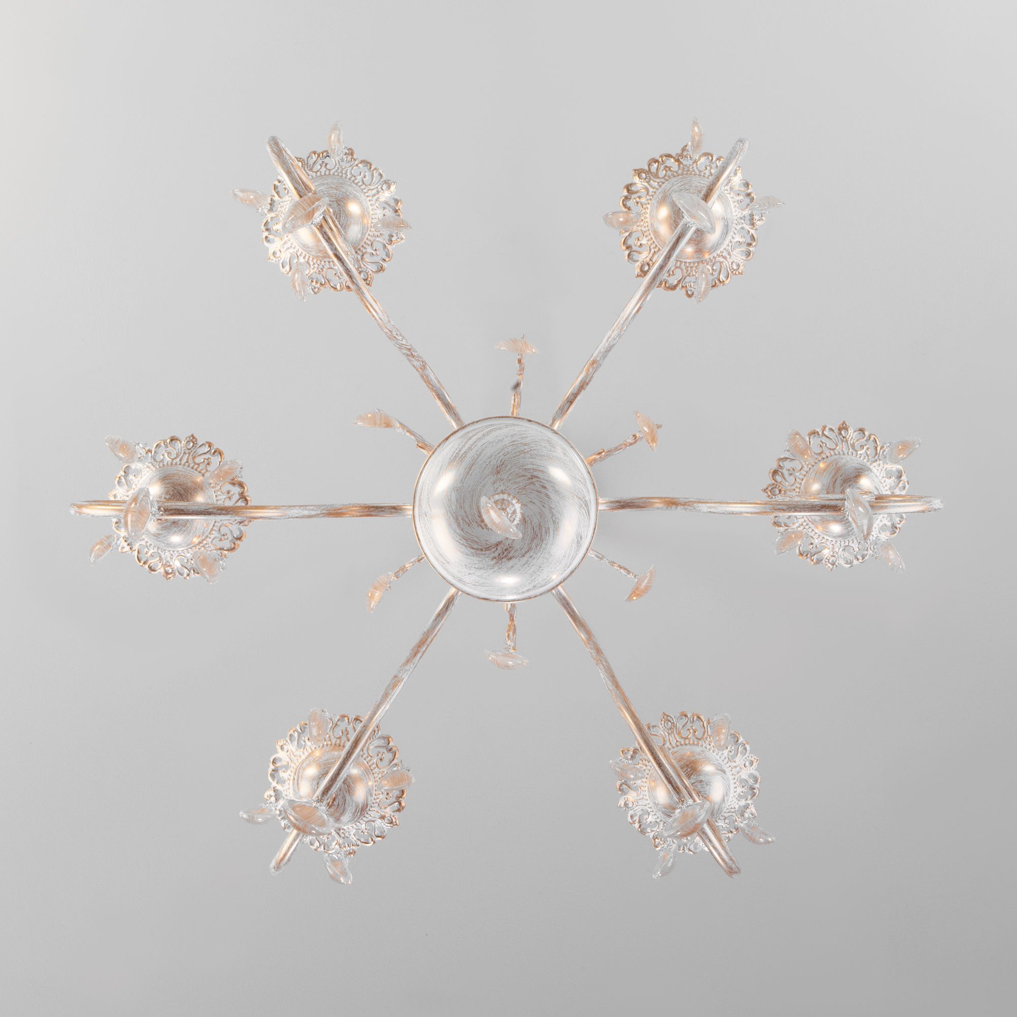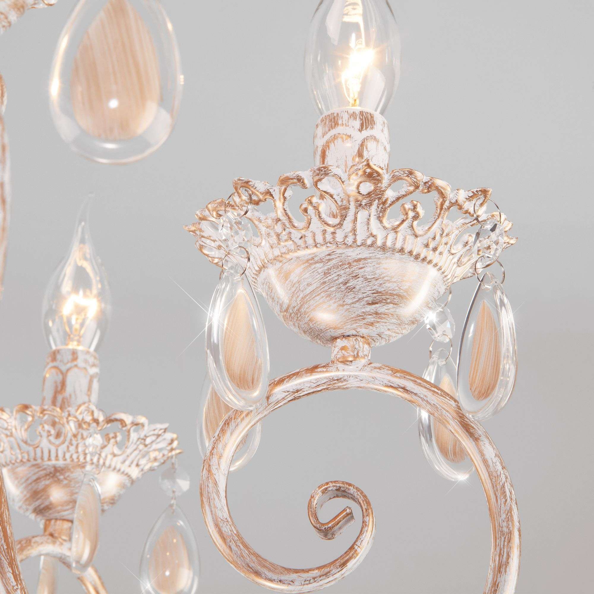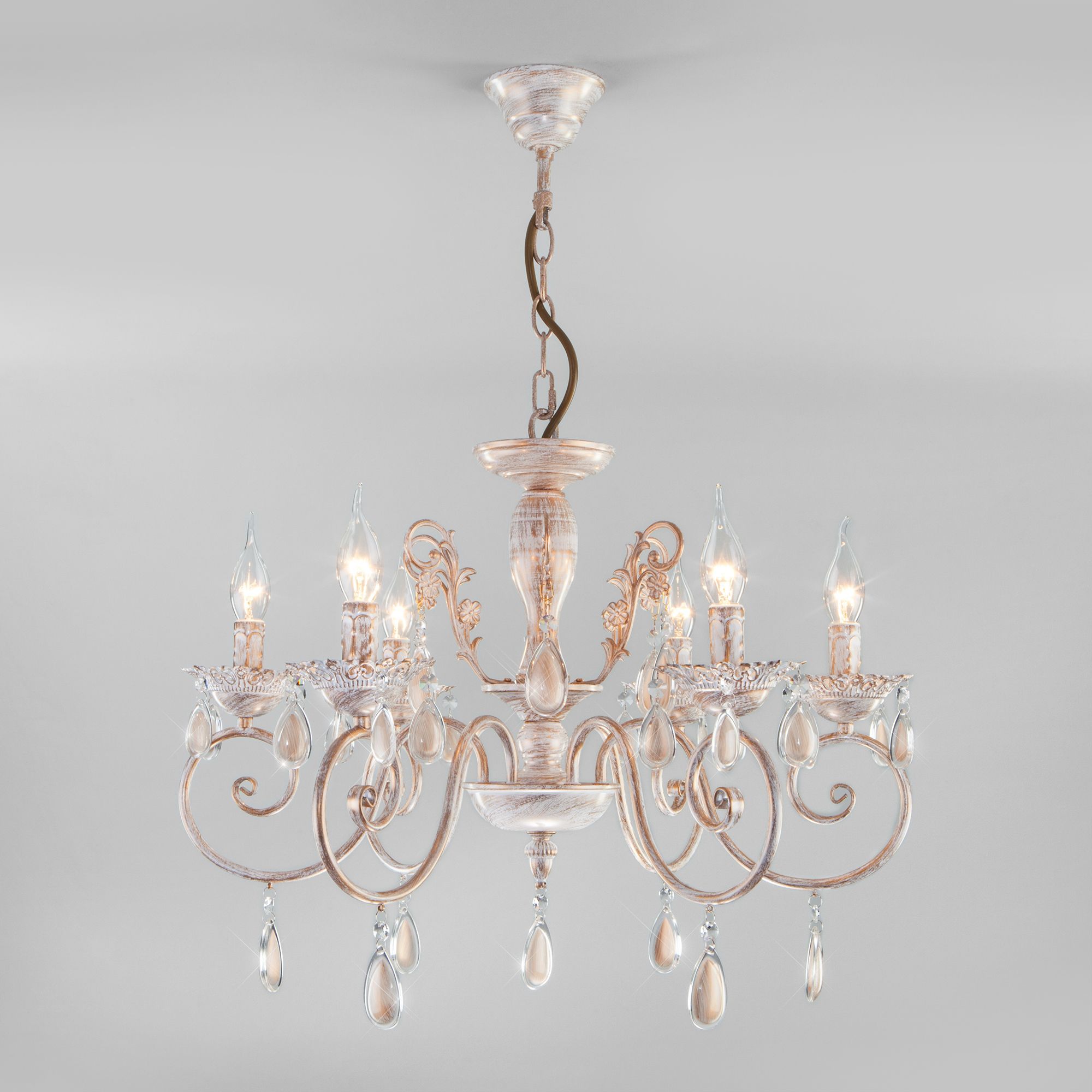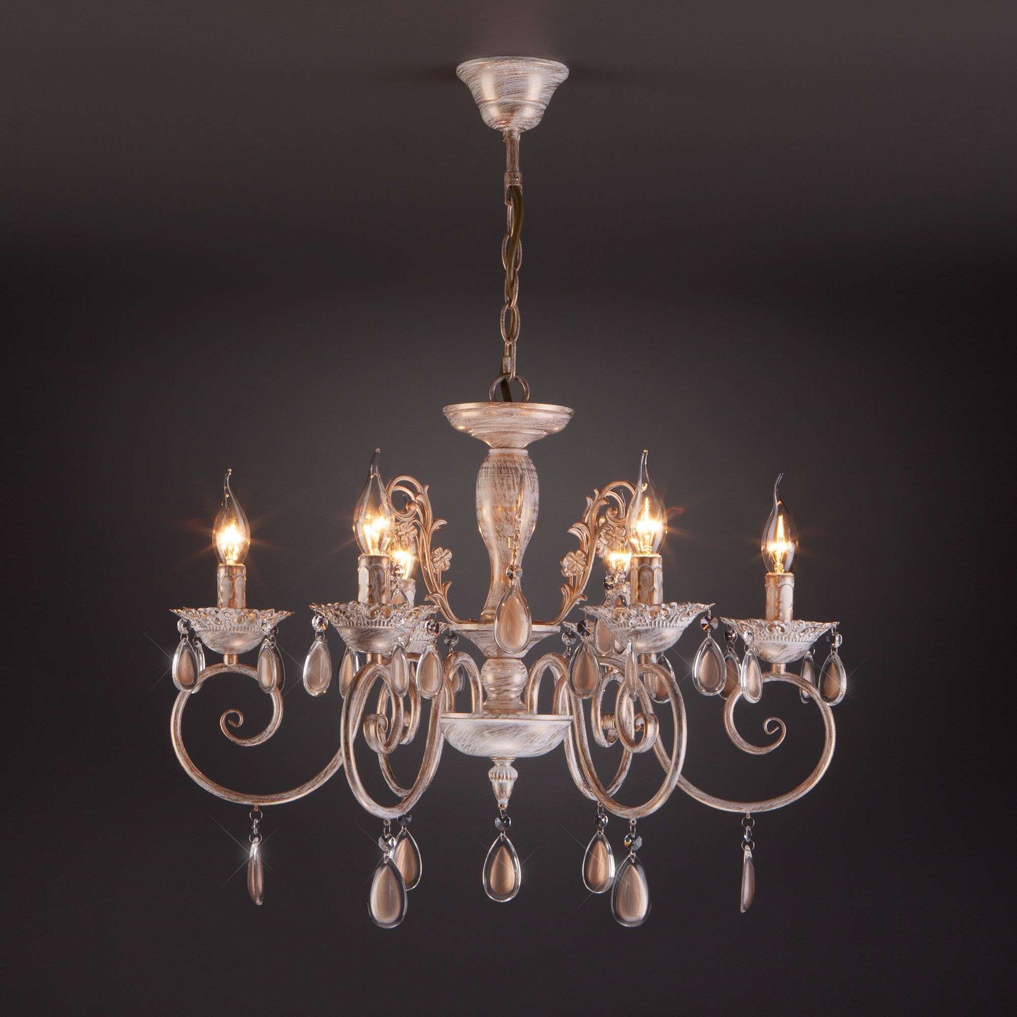 Классическая хрустальная люстра на 6 рожков в цвете белый с золотом преобразит потолочное пространство и создаст в вашем помещении комфортное полноценное освещение на площади 29 м кв.