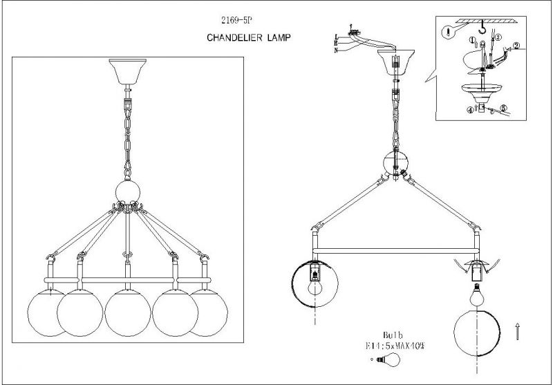 - Количество ламп: 5 шт