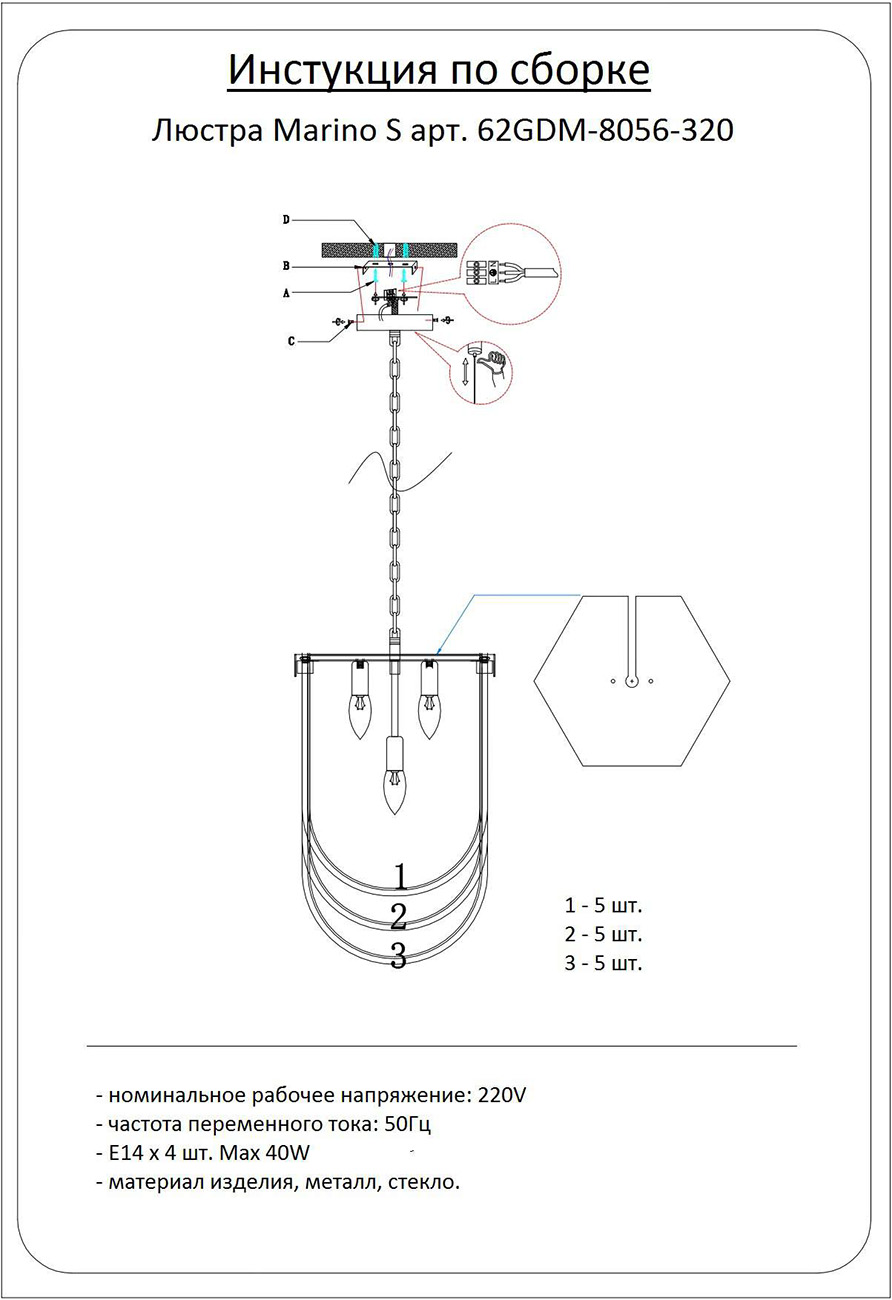 ?Способ крепления и установки люстры.