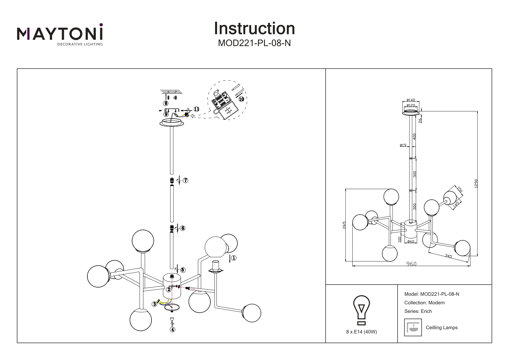 - Количество ламп: 8 шт