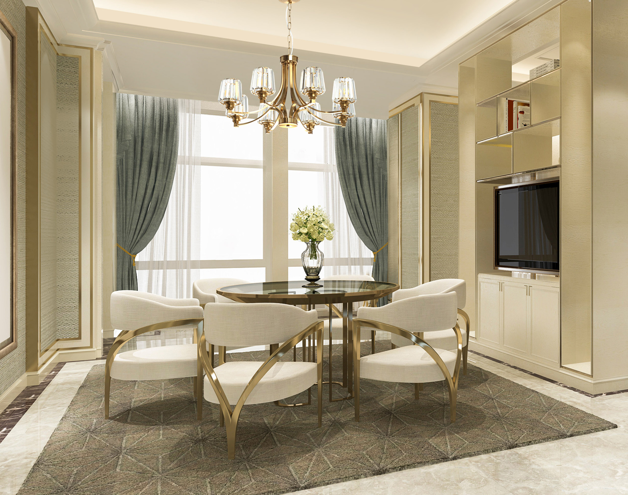 Металлическое основание светильника гальванизировано в цвет бронзы. Плафоны люстры декорированы прозрачным хрусталем прямоугольной формы со сложной огранкой.