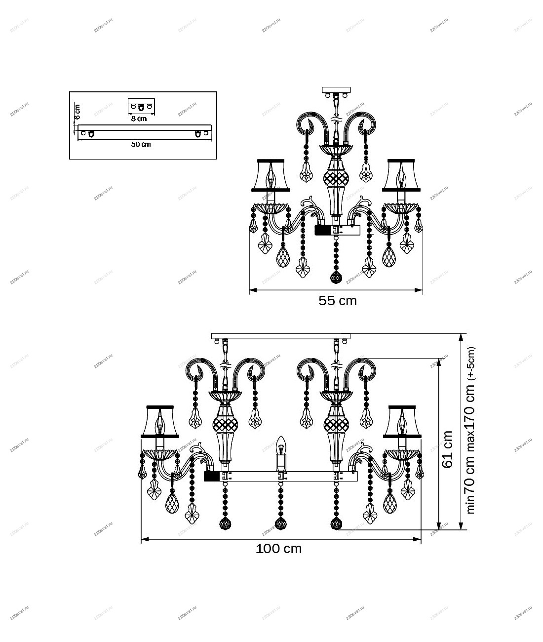 - Направление плафонов: Плафон вверх