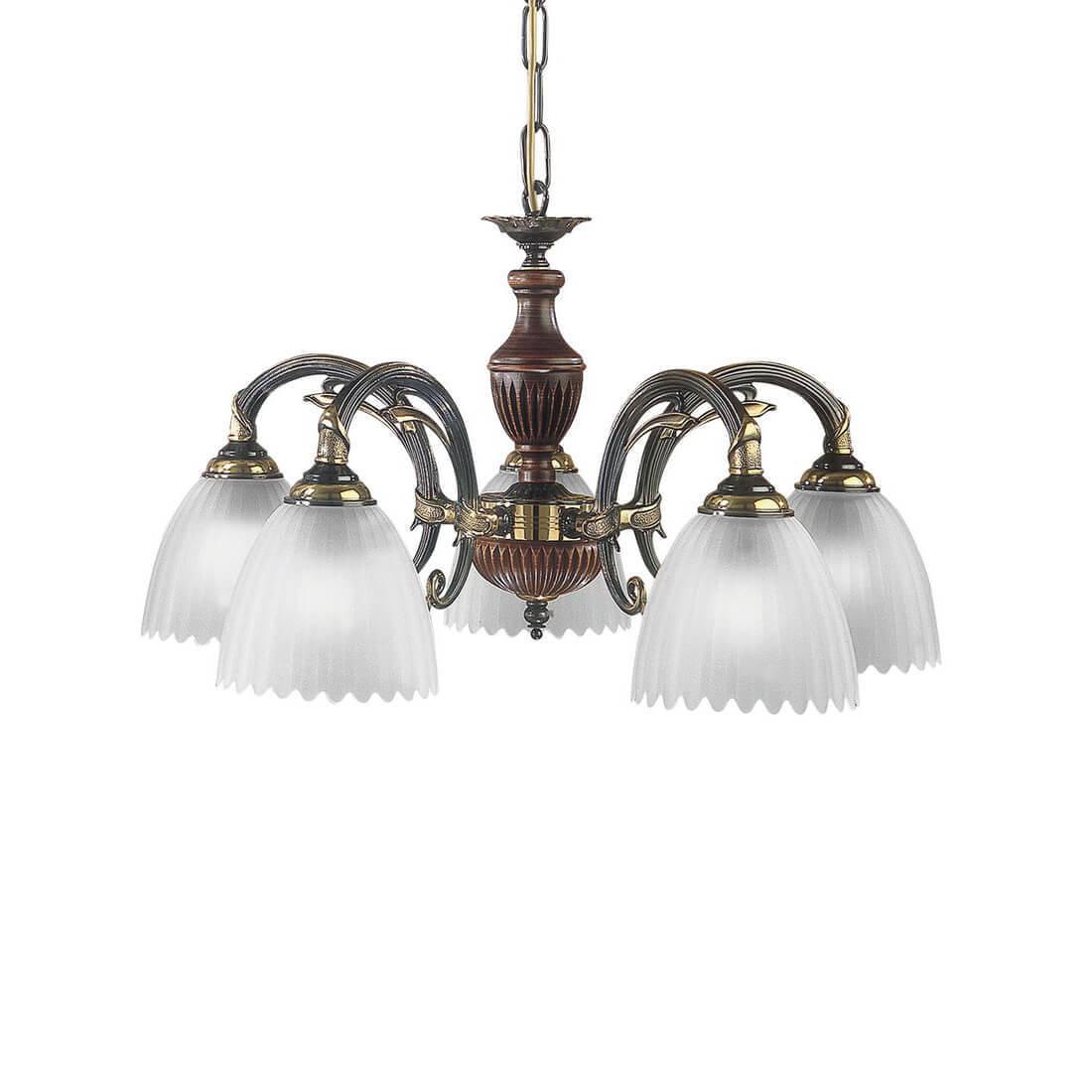 Подвесная люстра Reccagni Angelo L 3510/5 Итальянского производсва – лучшее соотношение цена-качество. Этот светильник Классического стиля хорошо подойдет Для гостиной и придаст помещению мягкий и приятный свет. Плафоны белые из стекла. Арматура бронза из металла. Кол-во ламп - 5шт. Общая мощность 300W