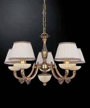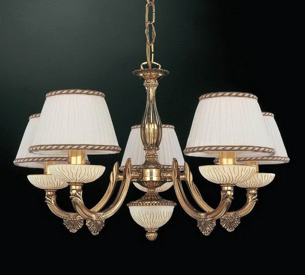 Подвесная люстра Reccagni Angelo L 5500/5 Итальянского производсва – уникальное сочетание высокого качества и удивительных фактур. Этот светильник Классического стиля хорошо подойдет Для гостиной и придаст помещению мягкий и приятный свет. Плафоны белые из ткани. Арматура золотая из металла. Кол-во ламп - 5шт. Общая мощность 300W