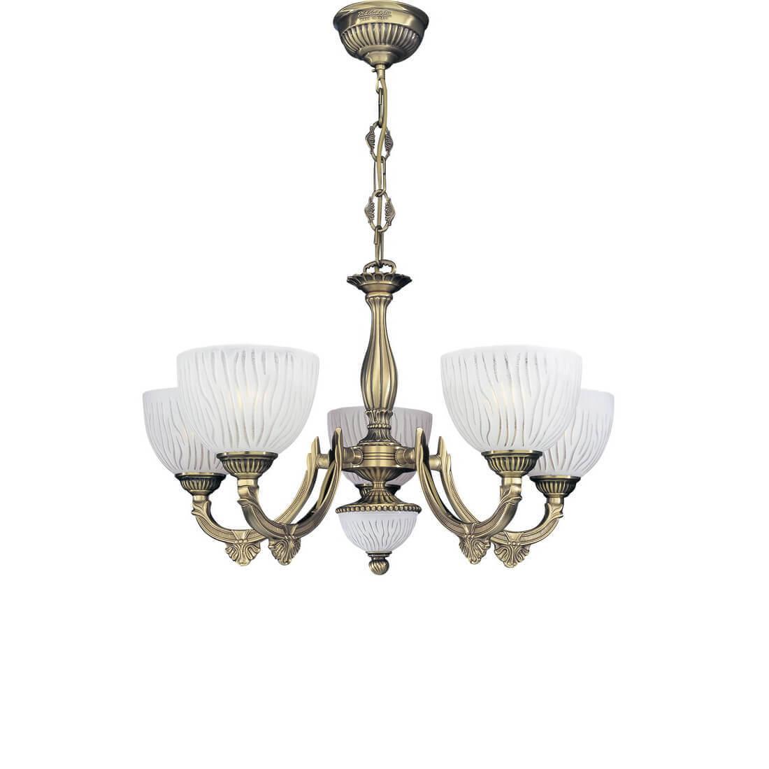 Подвесная люстра Reccagni Angelo L 5600/5 Итальянского производсва – уникальное сочетание высокого качества и удивительных фактур. Этот светильник Классического стиля хорошо подойдет Для гостиной и придаст помещению мягкий и приятный свет. Плафоны белые из стекла. Арматура бронза из металла. Кол-во ламп - 5шт. Общая мощность 300W