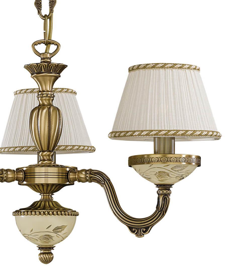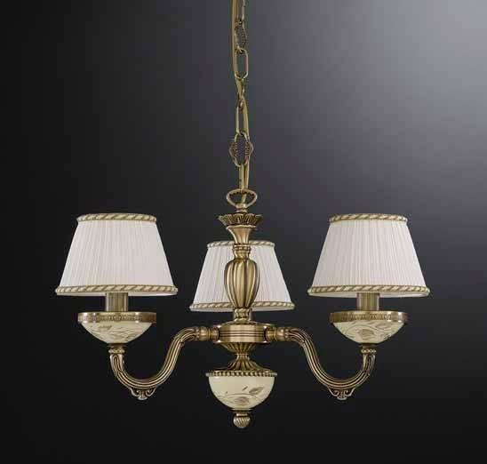 Подвесная люстра Reccagni Angelo L 6422/3 Итальянского производсва – лучшее соотношение цена-качество. Этот светильник Классического стиля хорошо подойдет Для спальни и придаст помещению мягкий и приятный свет. Плафоны белые из ткани. Арматура бронза из металла. Кол-во ламп - 3шт. Общая мощность 180W