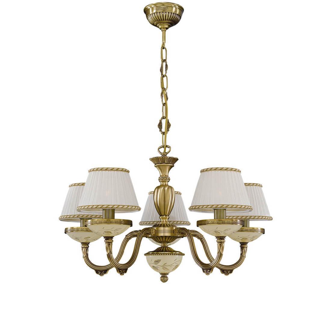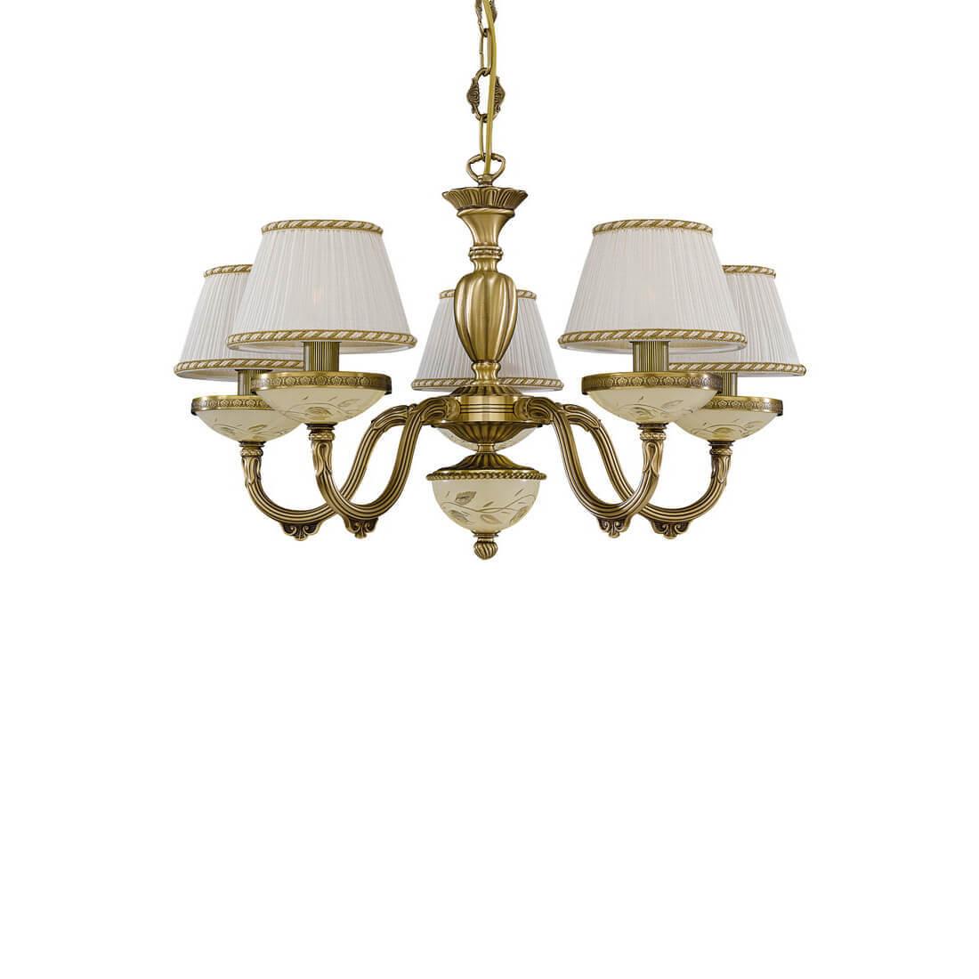Подвесная люстра Reccagni Angelo L 6422/5 Итальянского производсва – уникальное сочетание высокого качества и удивительных фактур. Этот светильник Классического стиля хорошо подойдет Для гостиной и придаст помещению мягкий и приятный свет. Плафоны белые из ткани. Арматура бронза из металла. Кол-во ламп - 5шт. Общая мощность 300W