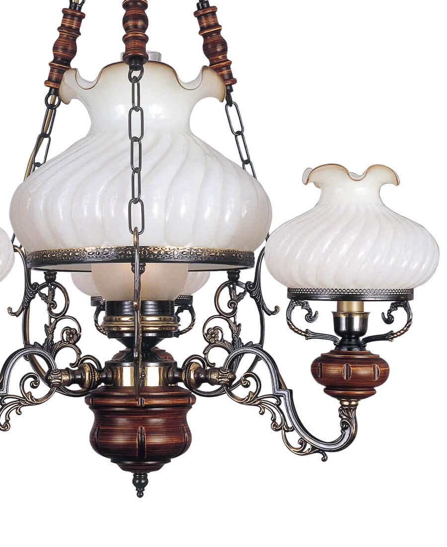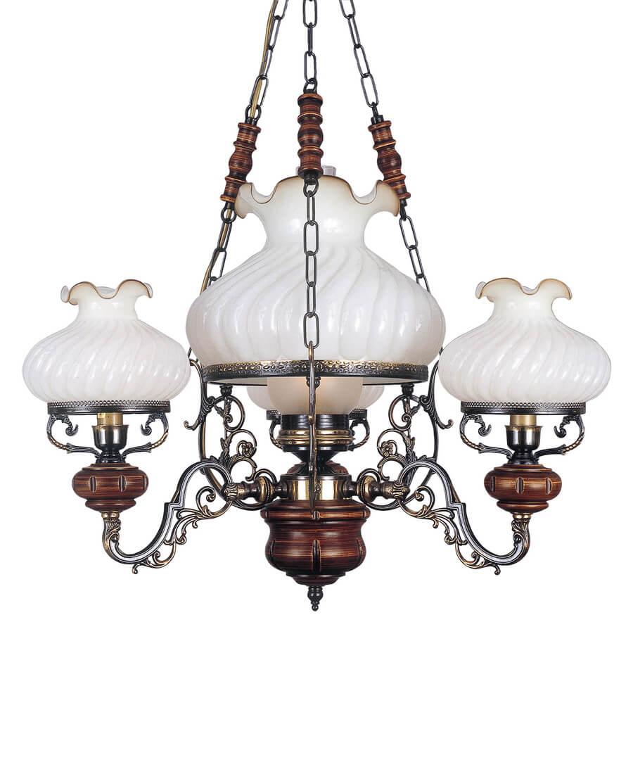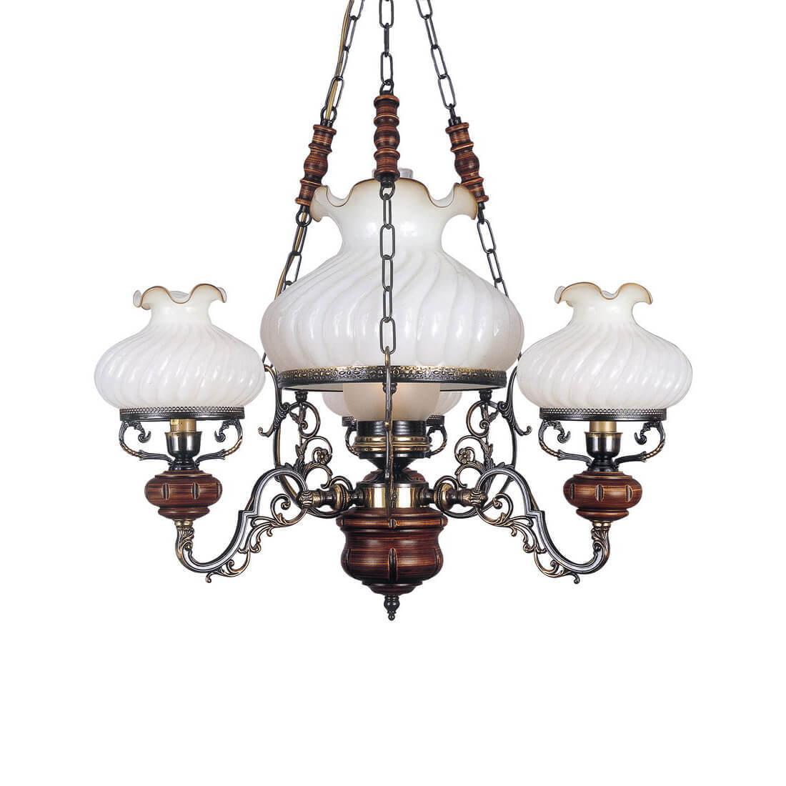 Подвесная люстра Reccagni Angelo L 760/3+1 Итальянского производсва – уникальное сочетание высокого качества и удивительных фактур. Этот светильник Классического стиля хорошо подойдет Для гостиной и придаст помещению мягкий и приятный свет. Плафоны белые из стекла. Арматура бронза из металла. Кол-во ламп - 4шт. Общая мощность 240W