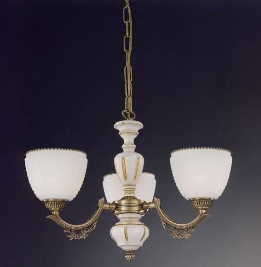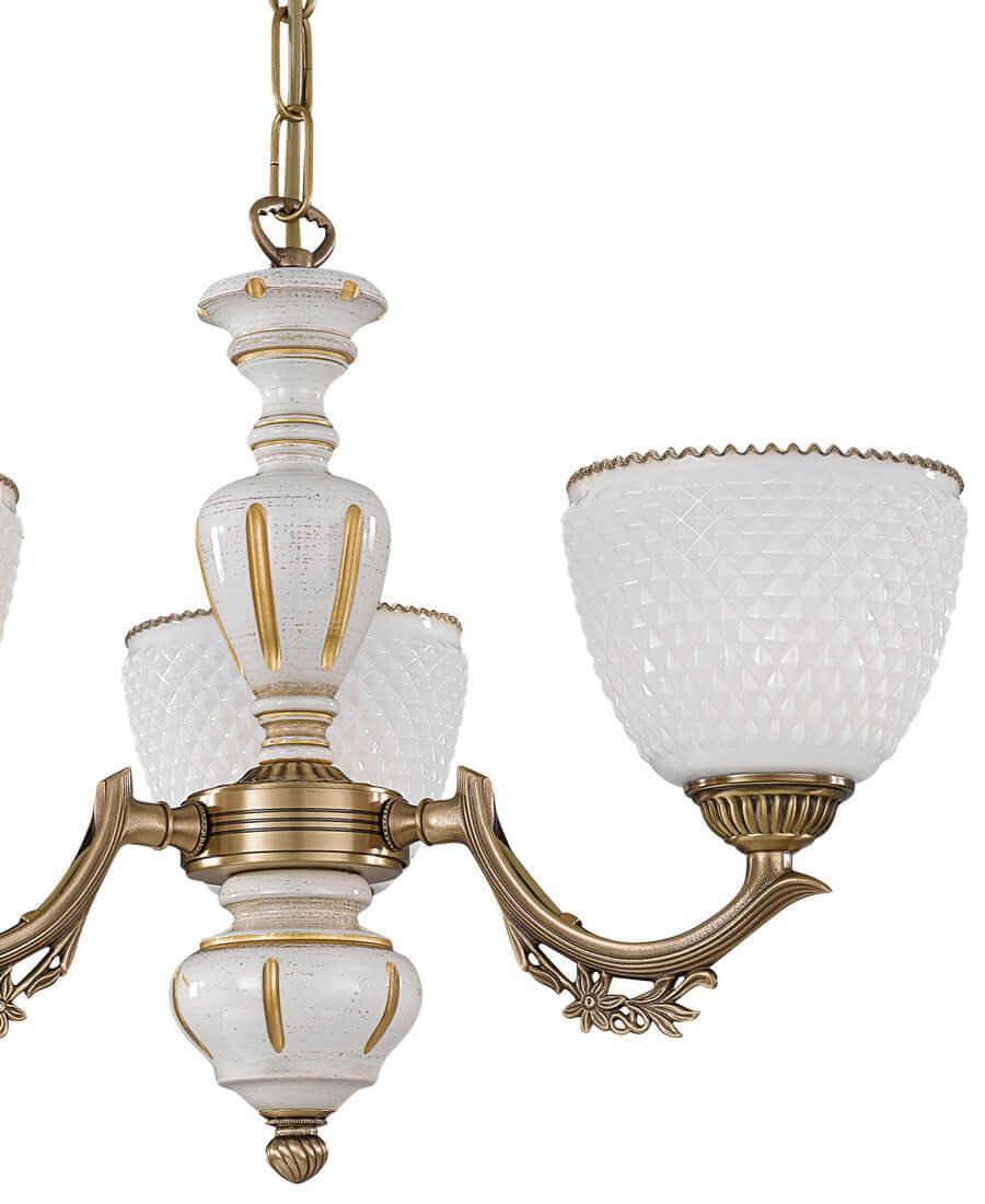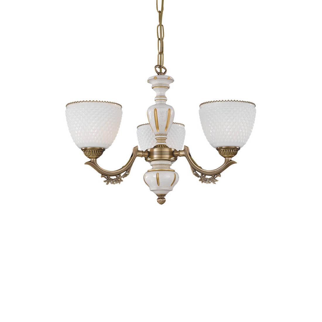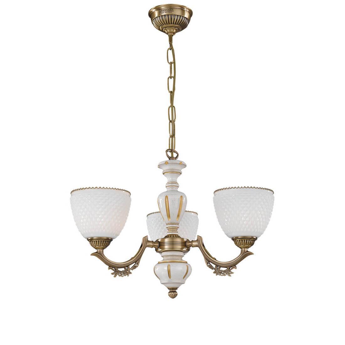 Подвесная люстра Reccagni Angelo L 8656/3 Итальянского производсва – лучшее соотношение цена-качество. Этот светильник Классического стиля хорошо подойдет Для гостиной и придаст помещению мягкий и приятный свет. Плафоны белые из стекла. Арматура бронза из металла. Кол-во ламп - 3шт. Общая мощность 180W
