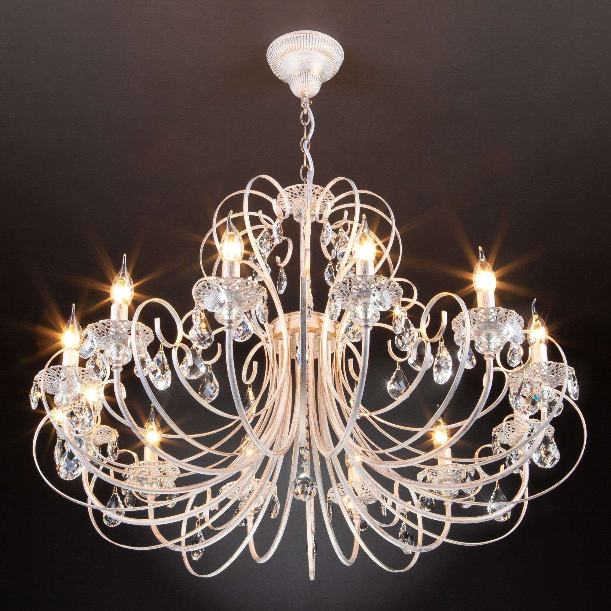 Классическая хрустальная люстра на 12 рожков в цвете белый с золотом / тонированный хрусталь преобразит потолочное пространство и создаст в вашем помещении комфортное полноценное освещение на площади 48 м кв.