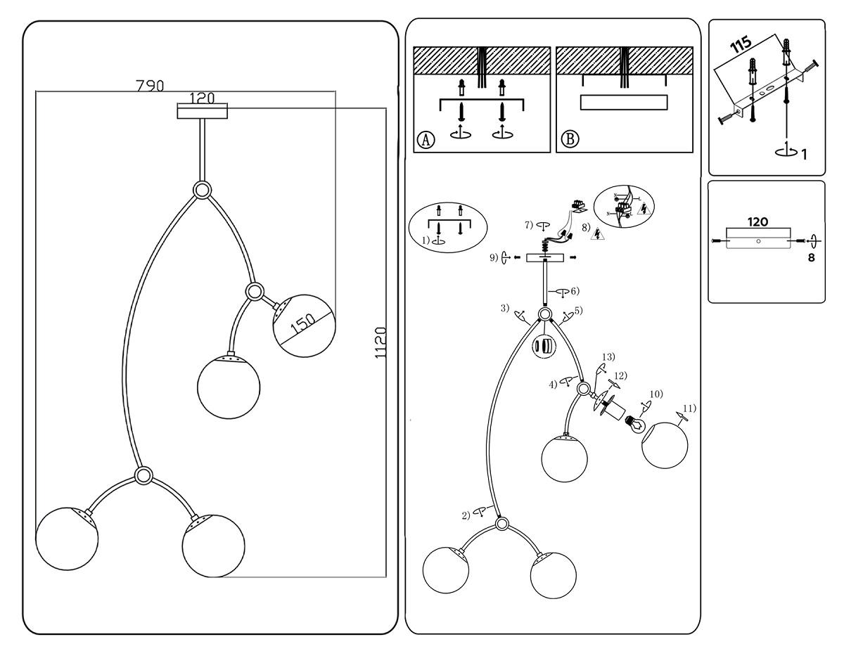 ?Способ крепления и установки люстры.