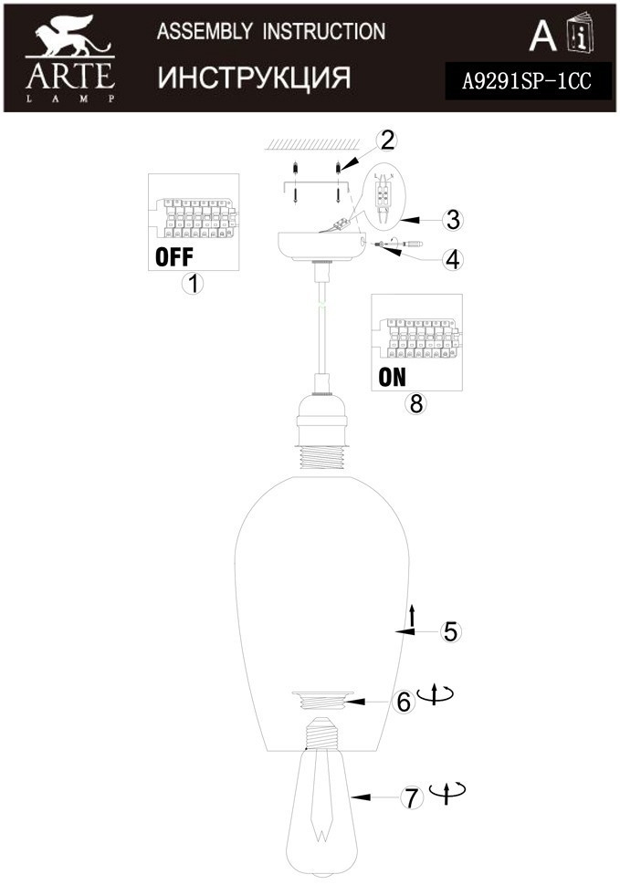 Подвесной светильник Arte Lamp A9291SP-1CC в Череповце