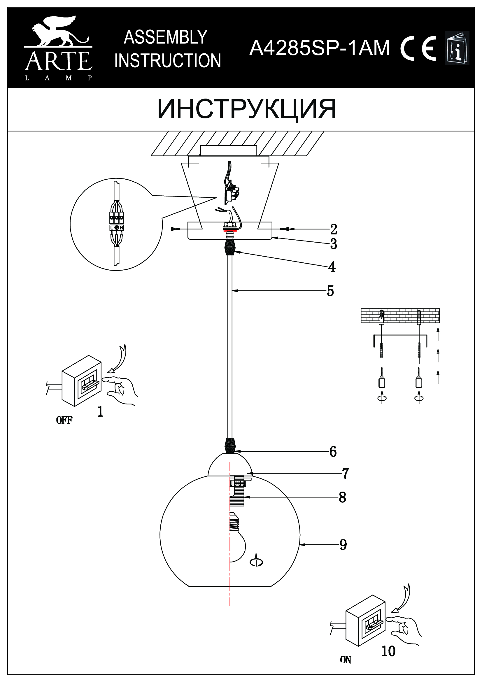 - Место установки: на потолок