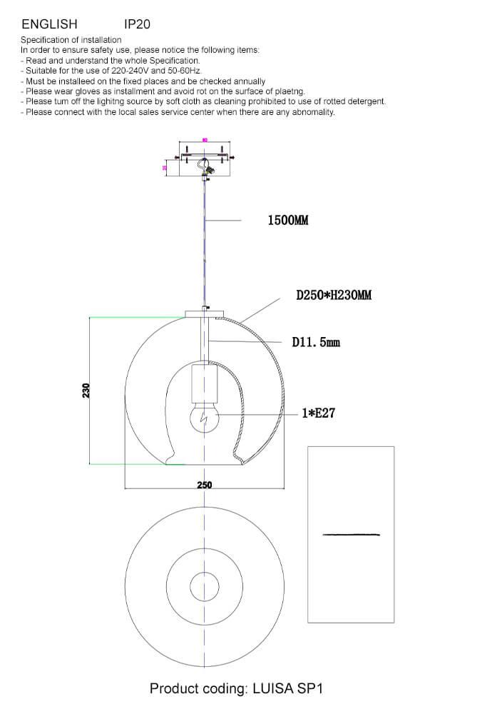 - Форма плафона: Шар
