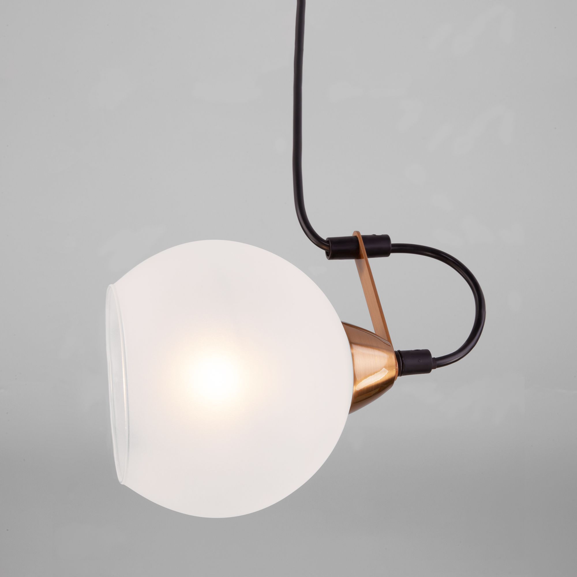 Светильник со стеклянным плафоном оснащен системой регулировки высоты подвеса, позволяющей размещать изделие на разных уровнях, уменьшая или увеличивая угол рассеивания светового потока. Данный светильник легко устанавливается на потолке при помощи монтажной планки.