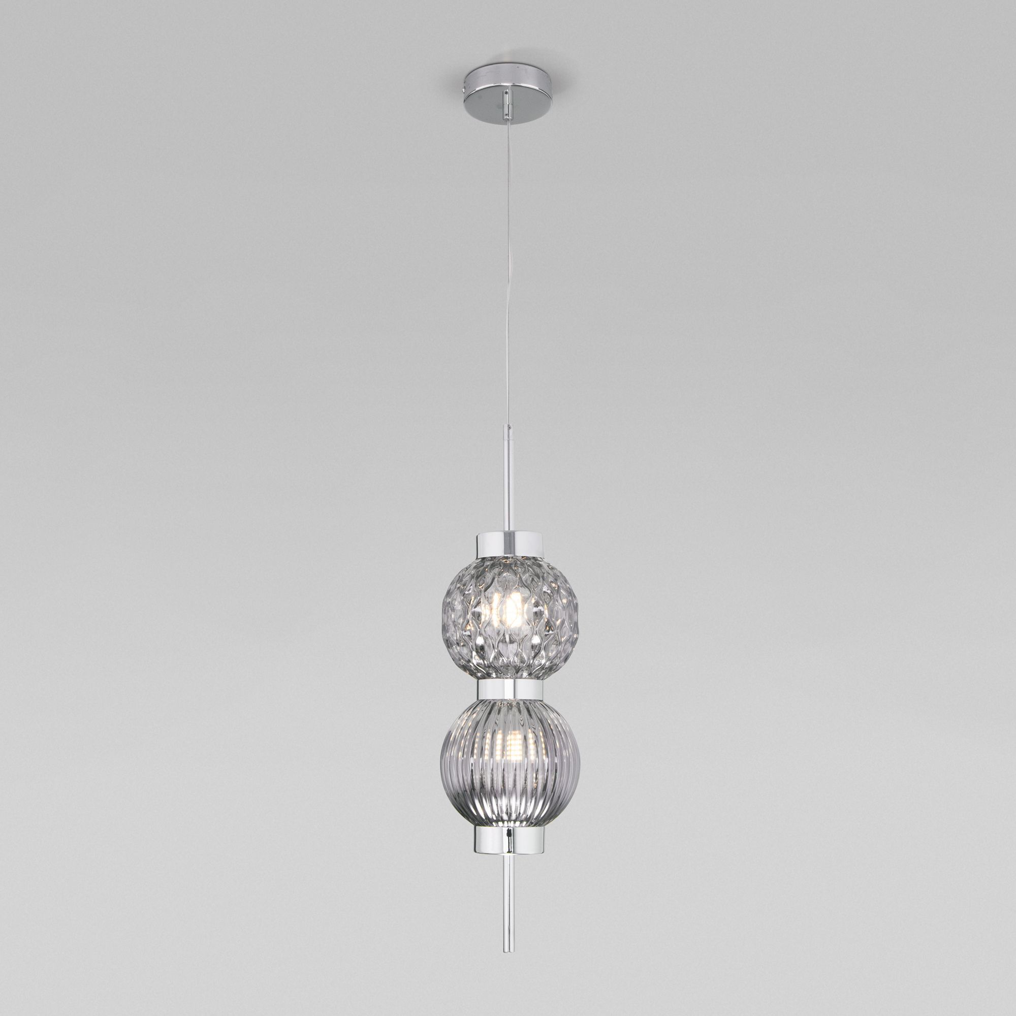 Подвесной светильник со стеклянными плафонами 50186/2 хром серия Plaz предназначен для создания дополнительного освещения и акцентной подсветки в современных интерьерах. Светильник со сменной лампой G9 создаст качественное освещение на площади 1 кв.м. и подсветит рабочие зоны на кухне, в гостиной, в офисе и других местах.