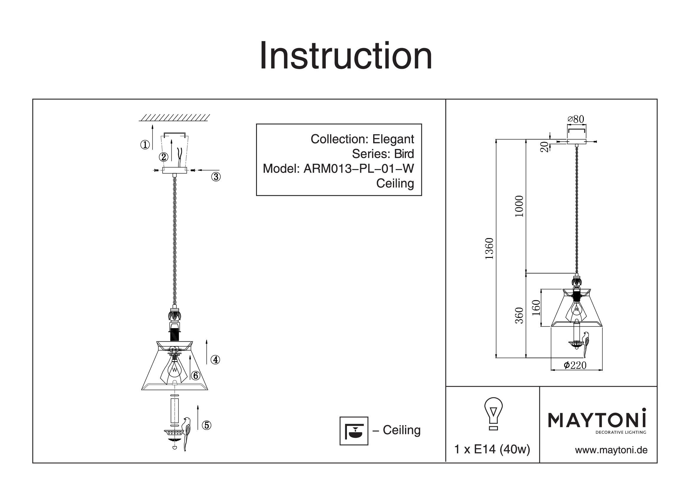 Подвесной светильник Maytoni Bird ARM013-PL-01-W в Череповце