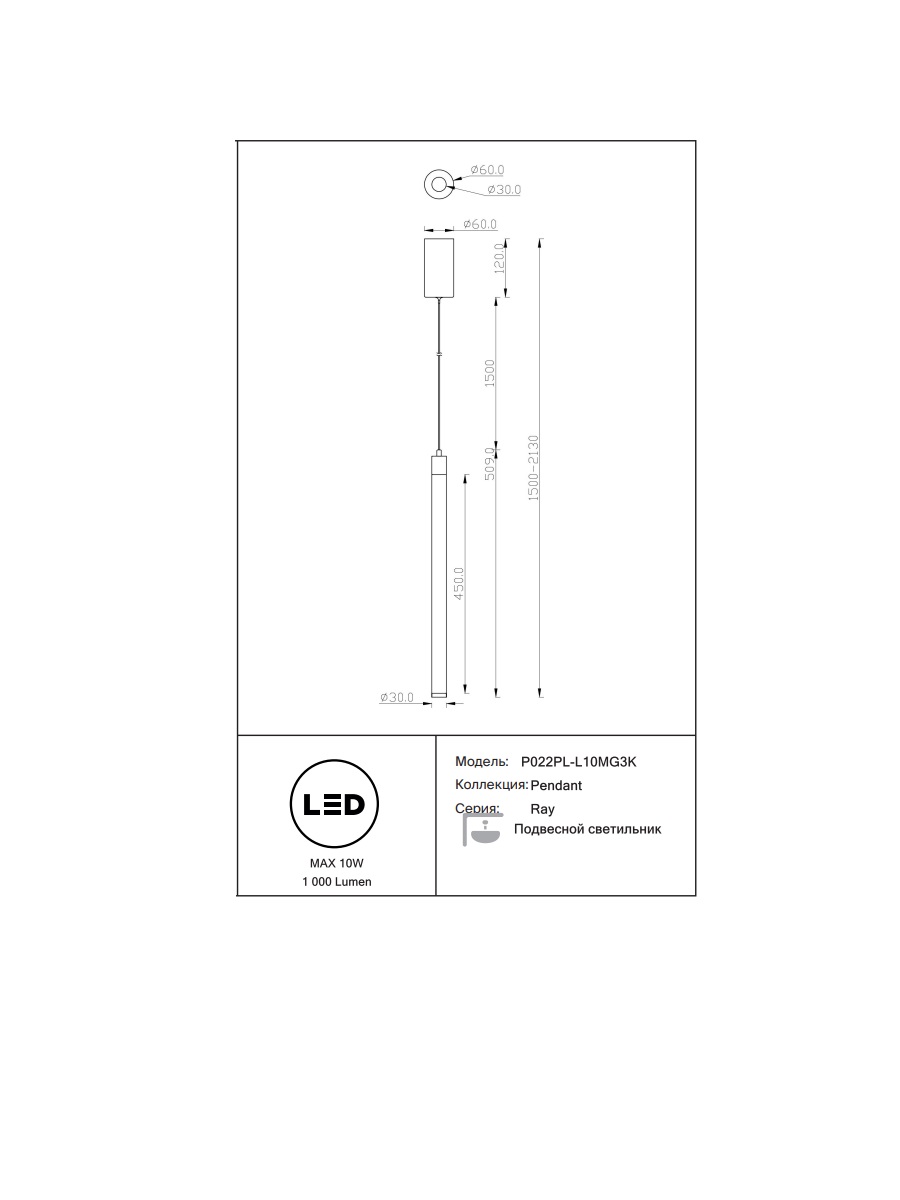 Данную модель P022PL-L10MG3K с быстрой доставкой спешите купить по цене 9 990 ₽ в магазине 220svet.ru