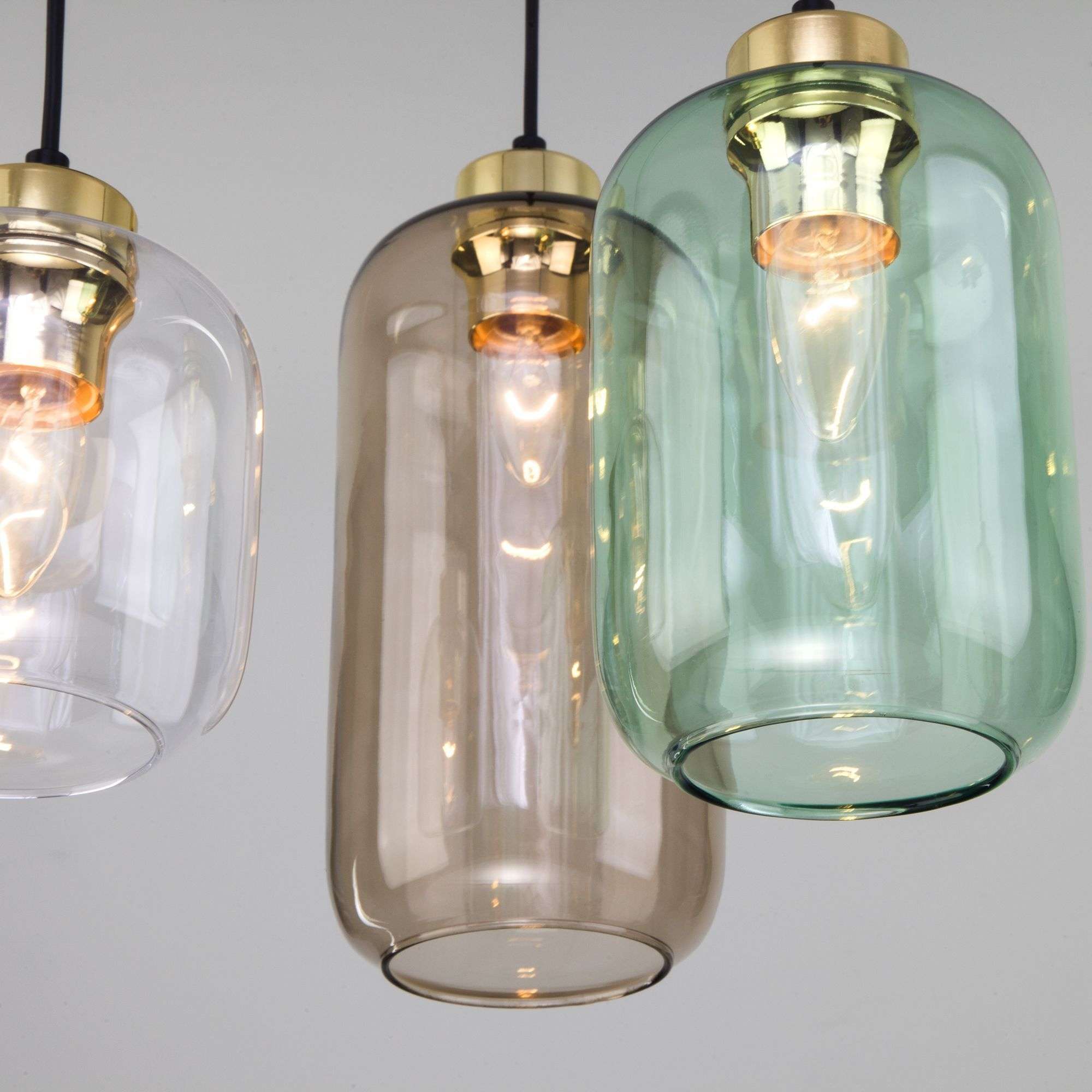 Светильник со стеклянными плафонами, в цвете янтарный, прозрачный, зеленый, оснащен системой регулировки высоты подвеса, позволяющей размещать изделие на разных уровнях, уменьшая или увеличивая угол рассеивания светового потока. Данный светильник легко устанавливается на потолке при помощи монтажной планки. Покупая любой светильник в интернет- магазине Минимир вы получаете ещё 2 года дополнительной гарантии.