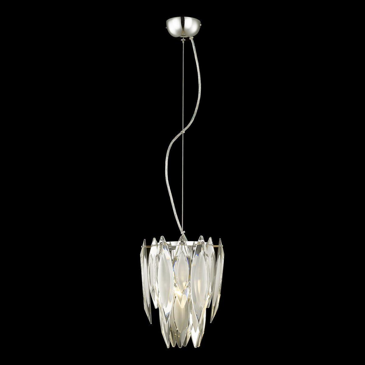 Подвесной светильник с хромированной арматурой и плафоном из клиновидных хрустальных пластин.