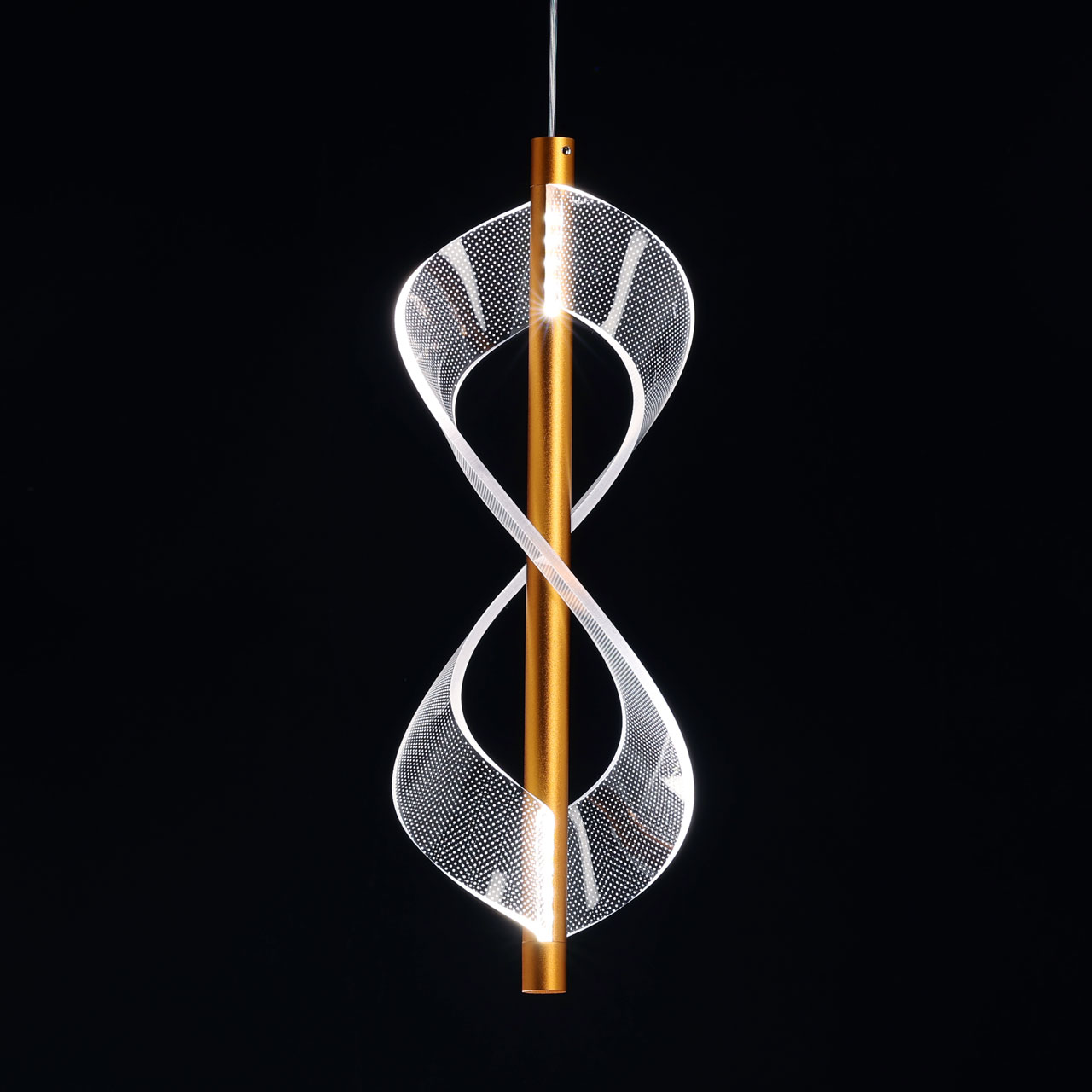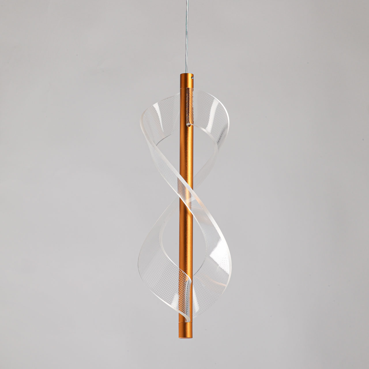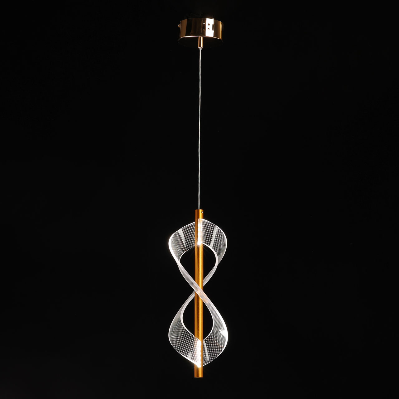 Металлическое основание подвеса гальванизировано в цвет золота. Подвес декорирован прозрачным литьевым акрилом.