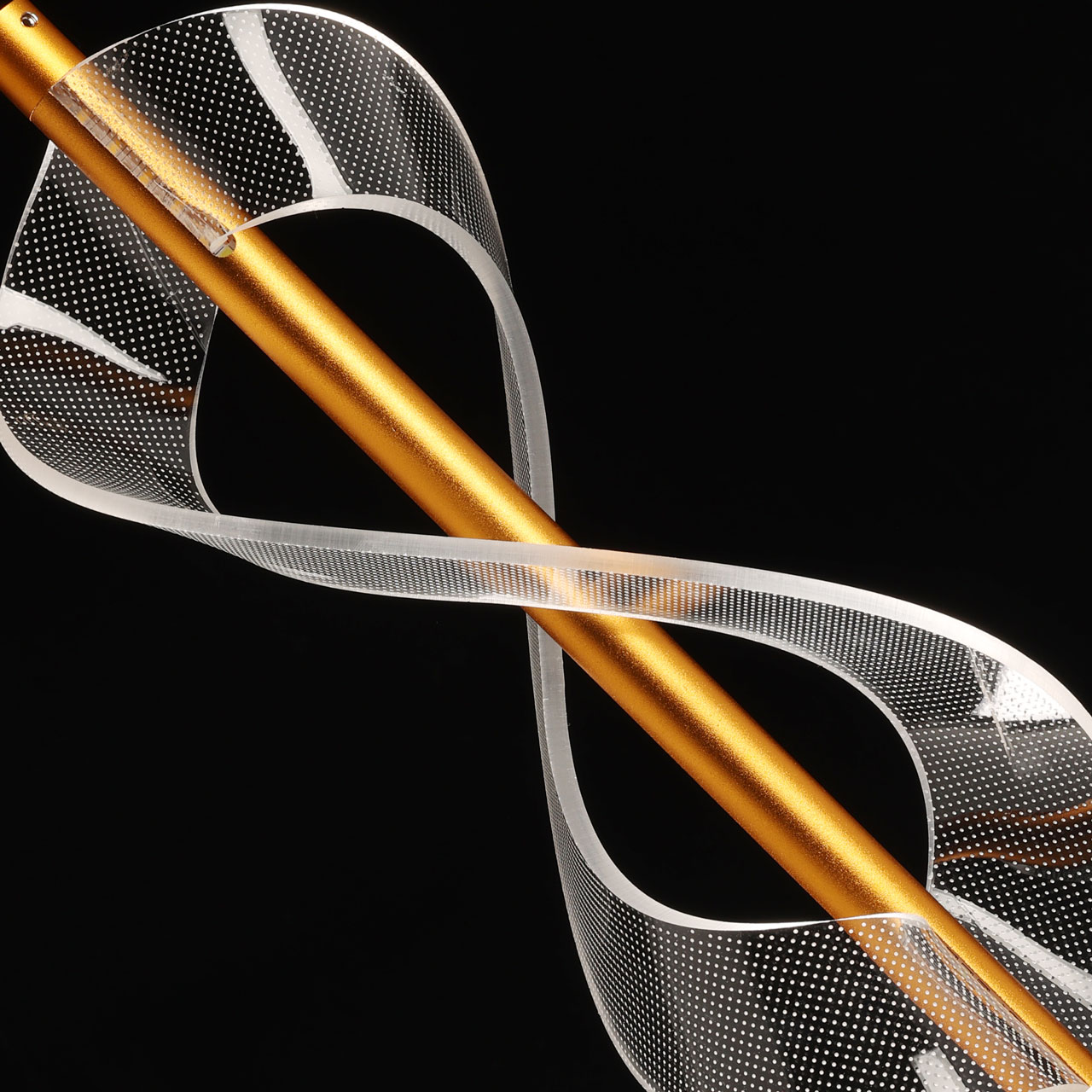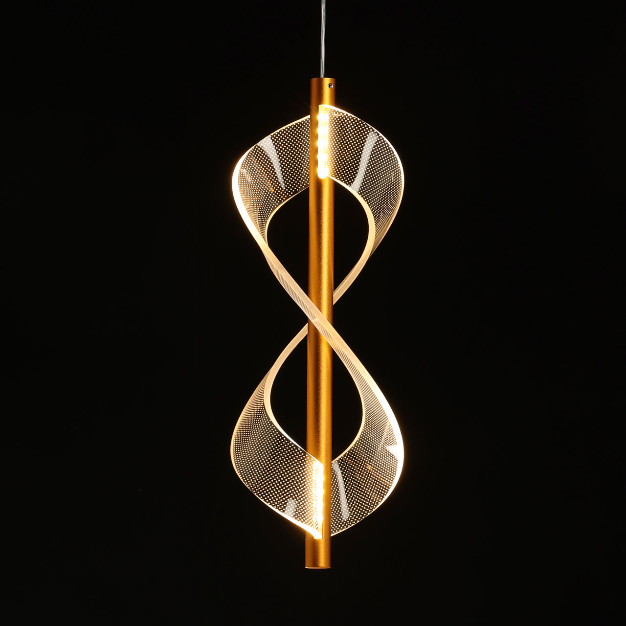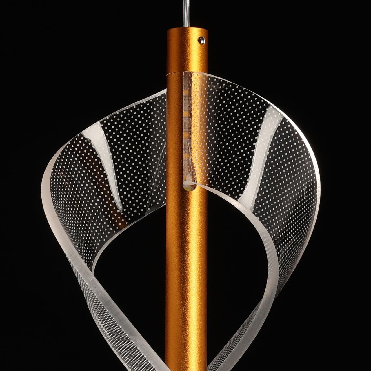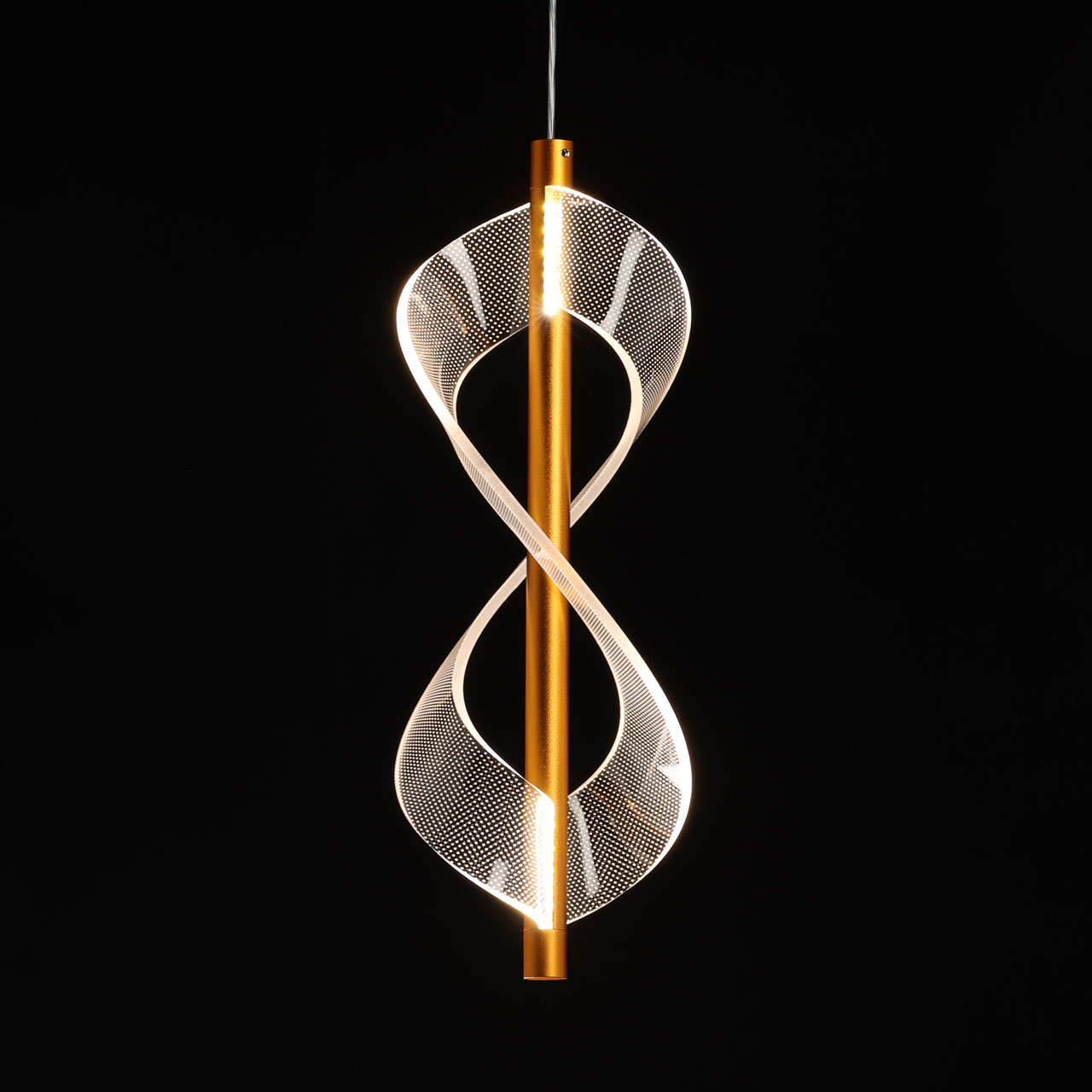 Металлическое основание подвеса гальванизировано в цвет золота. Подвес декорирован прозрачным литьевым акрилом.
