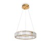 Металлическая арматура в цвете латунь и хром. Хрустальные декоративные кольца с геометричными гранями. LED-источник света. Регулировка цветовой температуры (3000-4000-5000K) и яркости 4G-dimming при помощи пульта (в комплекте).