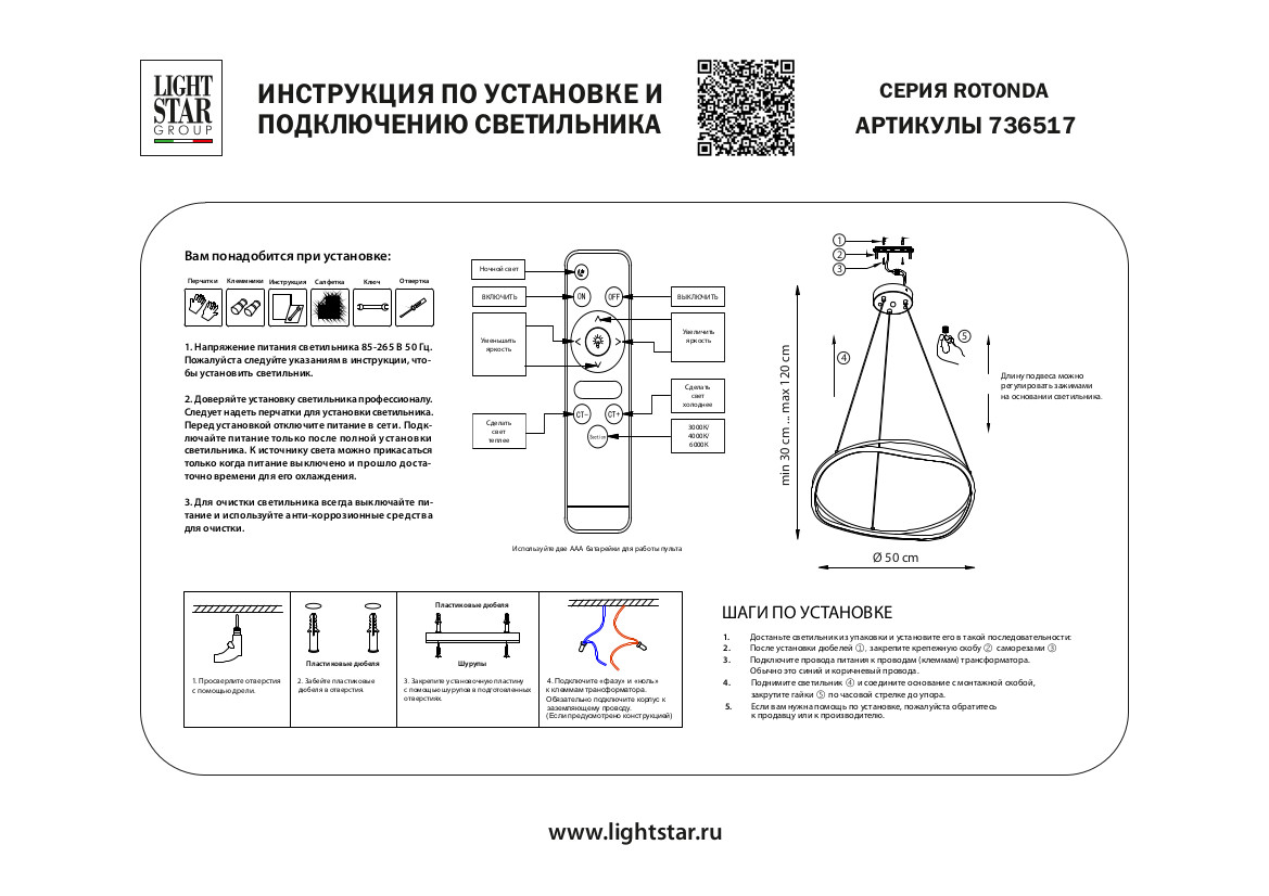 - Цветовая температура, K: 3000-6000