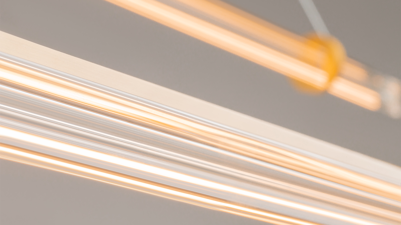 Алюминиевый корпус в золотом цвете латуни с сатинированным финишным покрытием и длинные тонкие плафоны, изготовленные из рифленого стекла, напоминающие блики от свечения кометы, придают светильнику современный и стильный вид, не загромождая пространство, а органично дополняя его. Размеры устройства составляют 180 мм х 3100 мм, что позволяет легко интегрировать его в любое интерьерное пространство. Технической особенностью является регулировка по высоте в диапазоне от 500 мм до 3000 мм. Модели, входящие в коллекцию Plume MOD340PL, идеально подойдут для размещения в зоне гостиной, спальни, кабинета или офиса, оформленных в стиле модерн, а также для размещения в зоне барной стойки или острова в столовой, позволяя использовать в тандеме подвесные светильники с горизонтальным размещением в двух вариантах размеров: длина плафона может составлять 1200 и 1500 мм, и настенный источник света, длиной 600 мм.
