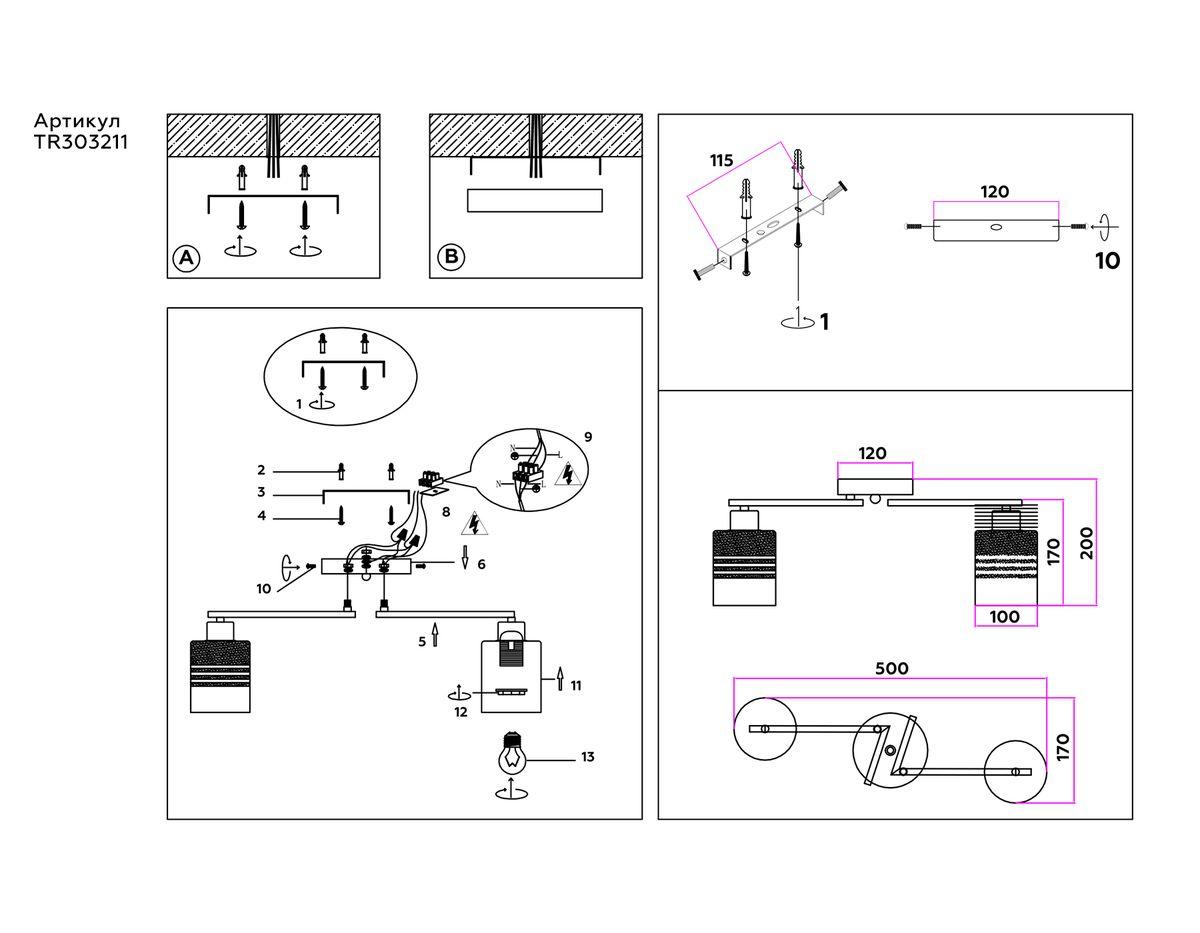 ?Способ крепления и установки люстры.