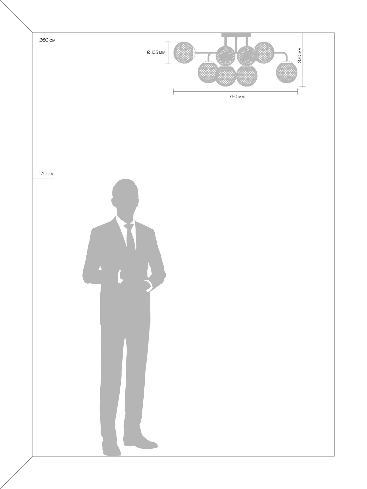 - Диаметр плафона (абажура): 135