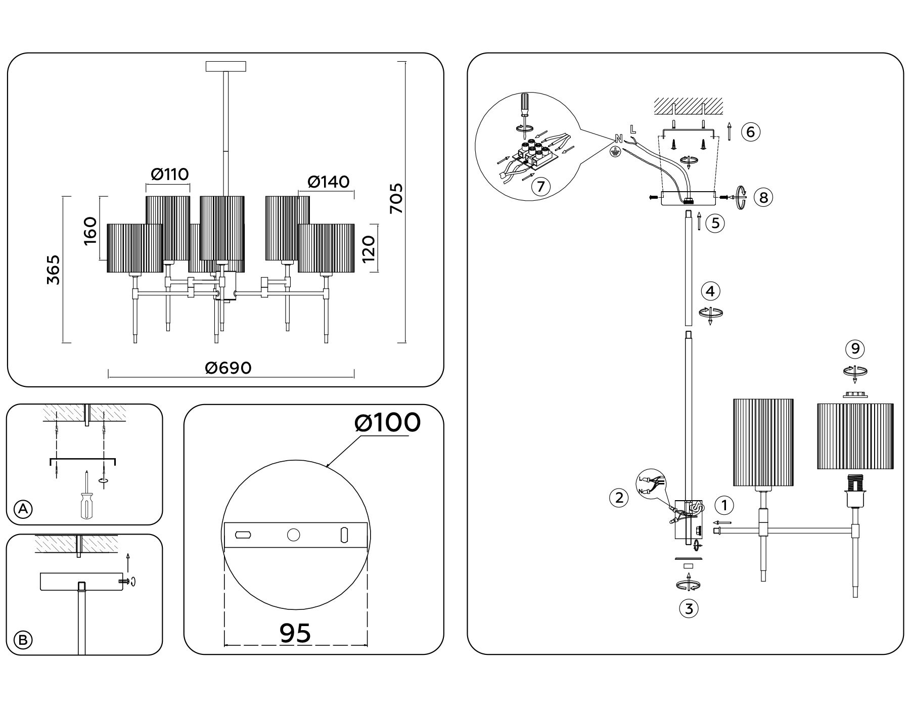 ?Способ крепления и установки люстры.