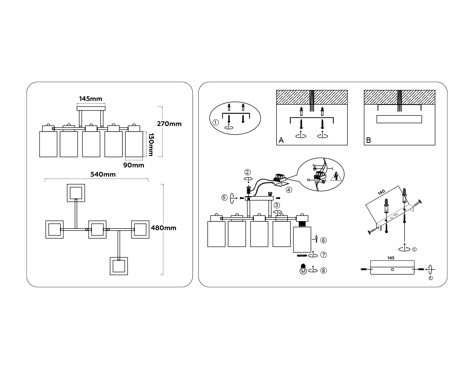 ?Способ крепления и установки люстры.