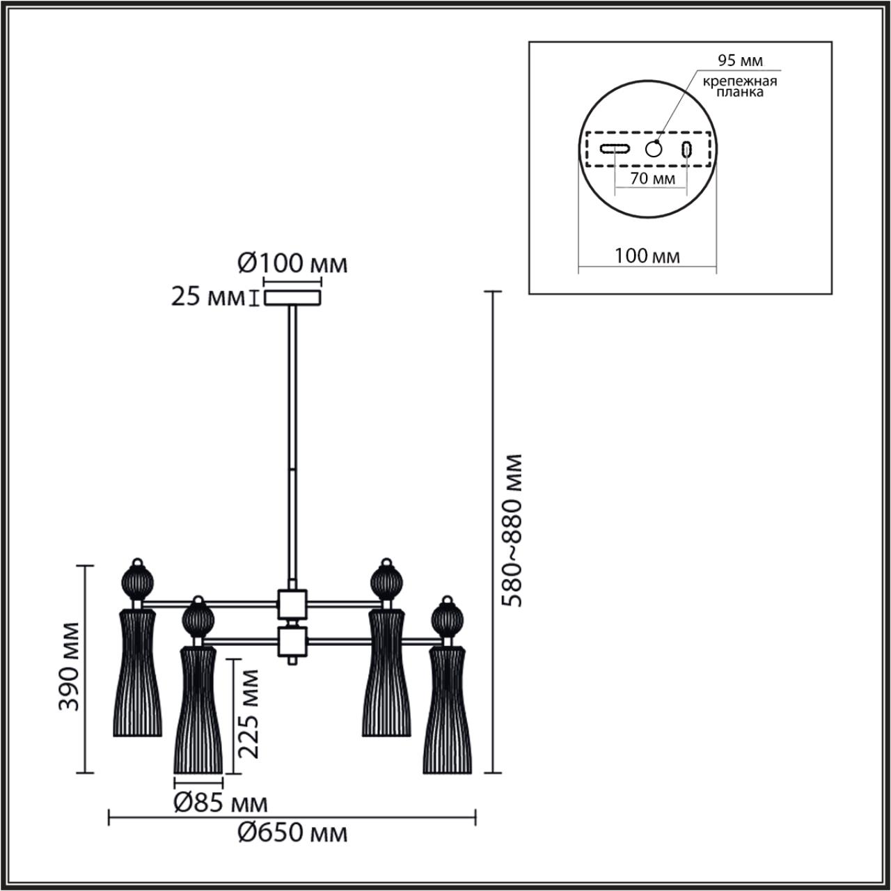 - Цвет плафонов: Прозрачный