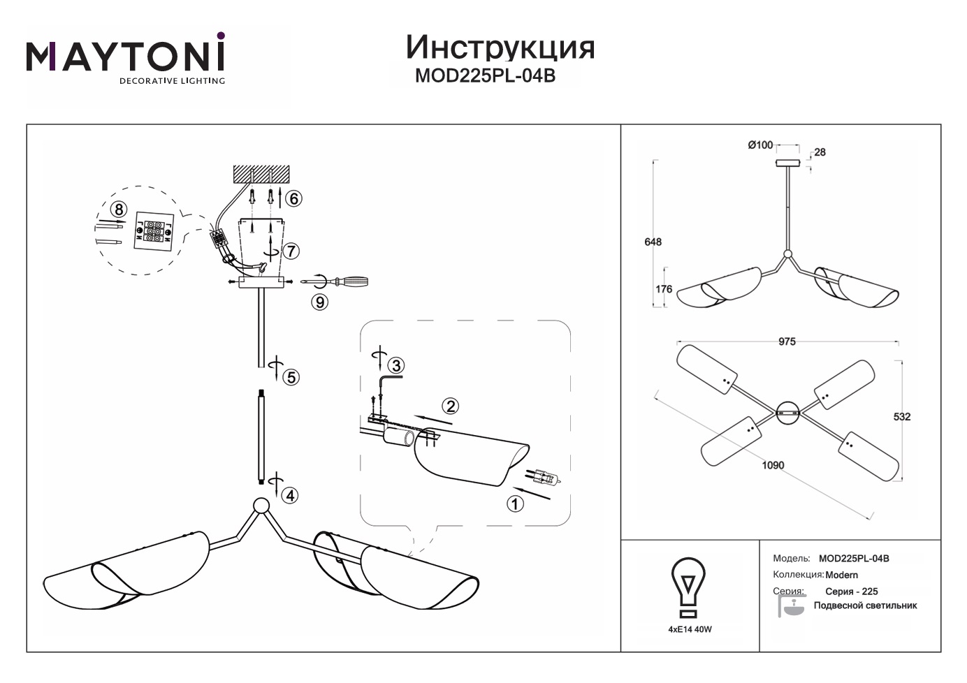 Данную модель MOD225PL-04B с быстрой доставкой спешите купить по цене 27 990 ₽ в магазине 220svet.ru