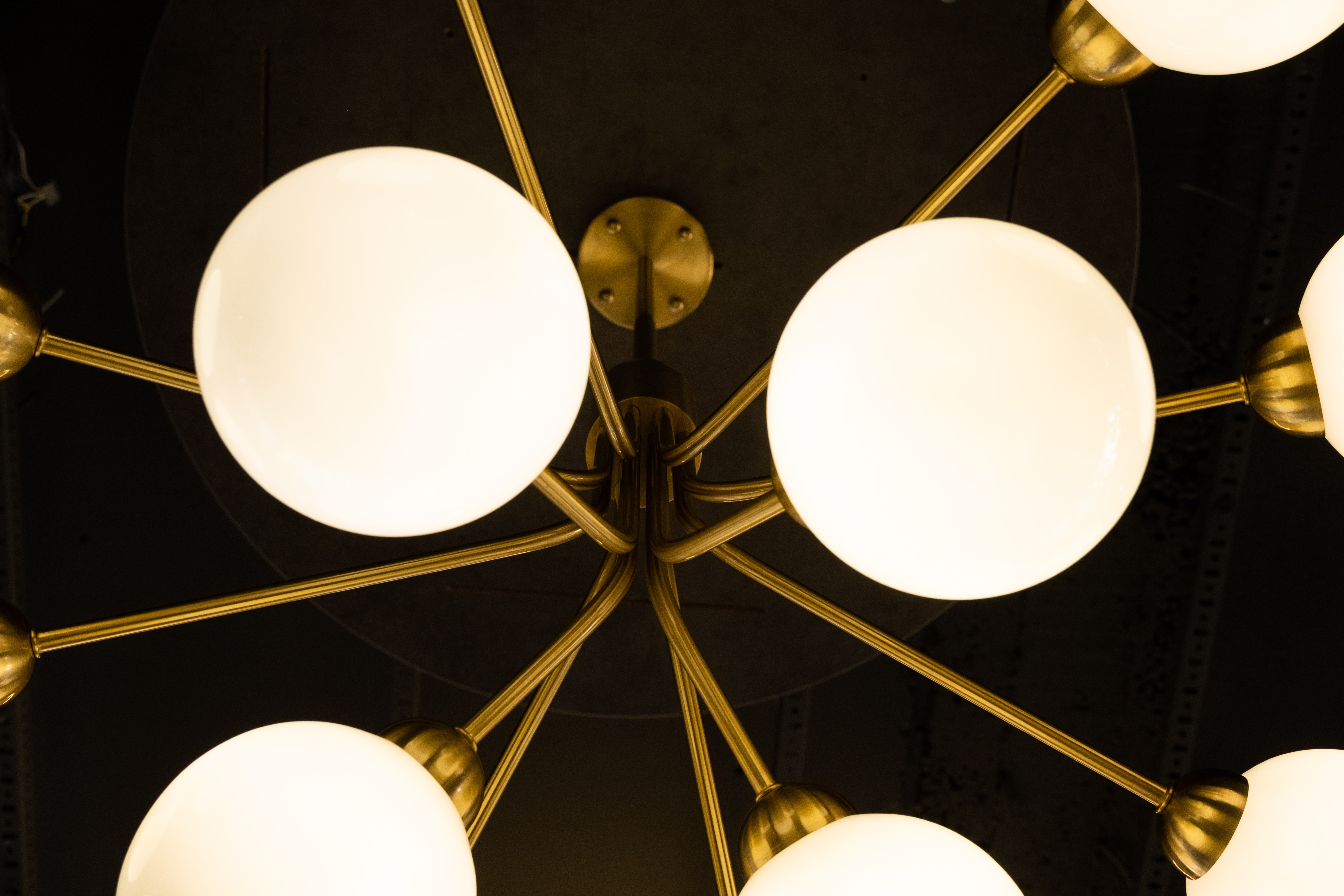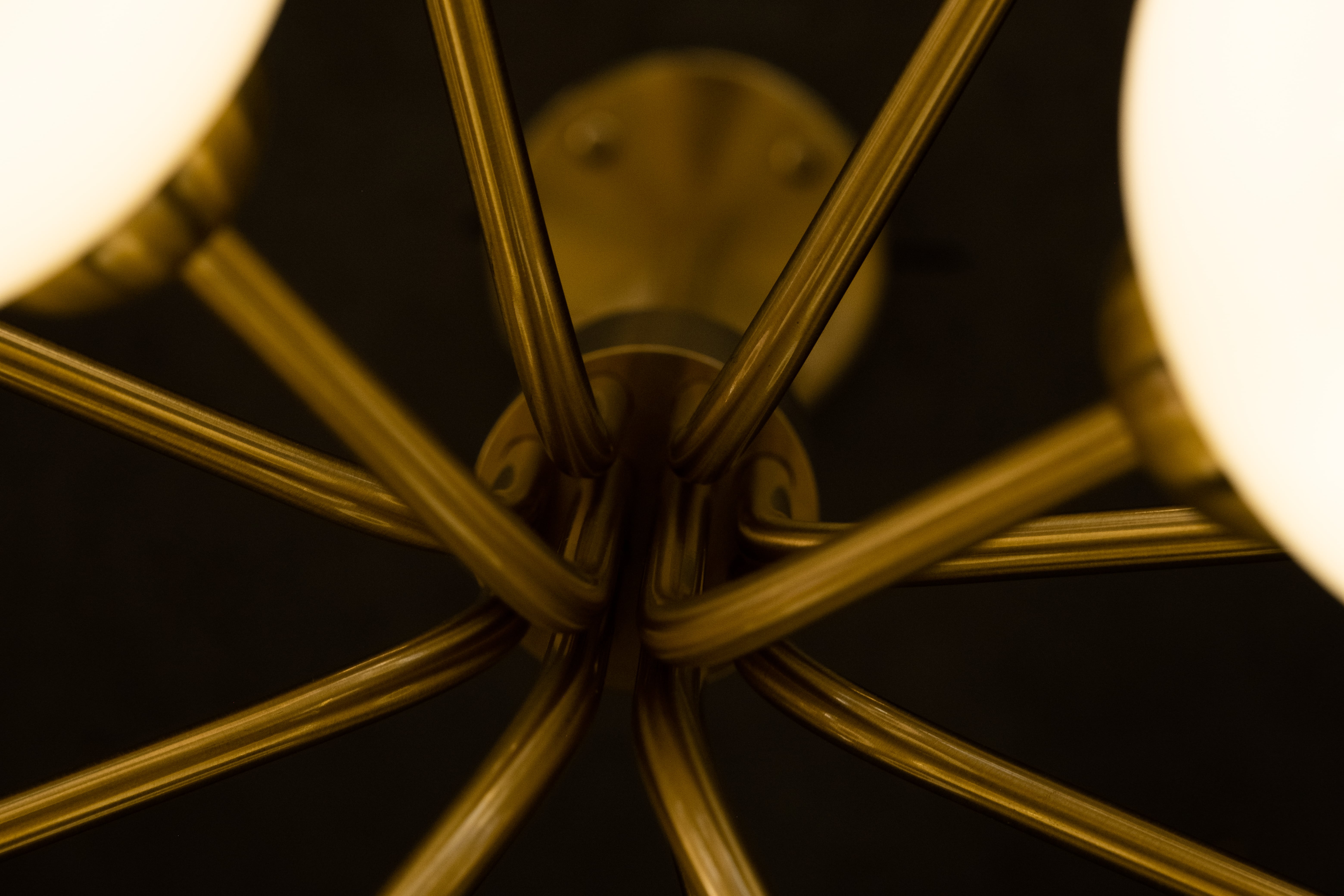 Модель с двенадцатью глянцевыми опаловыми шарами из выдувного стекла изготовлена подобно раскрывающемуся цветку, от которого грациозно исходит свет.