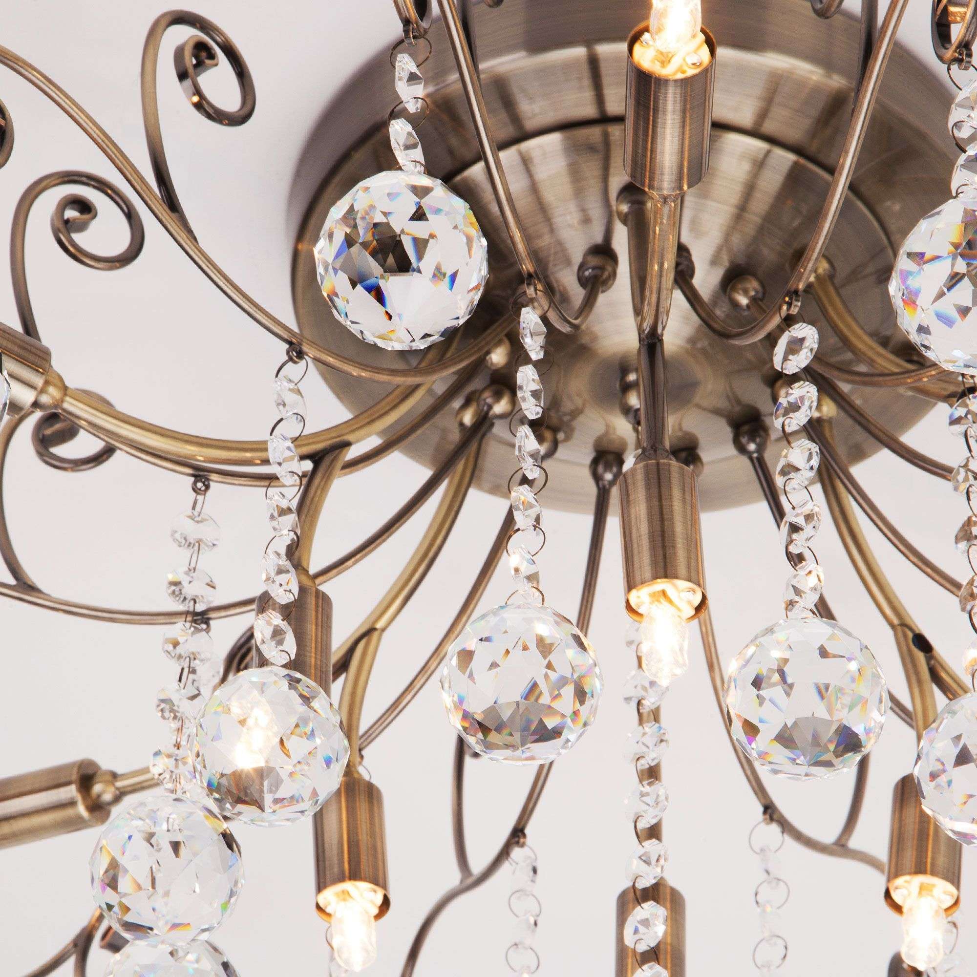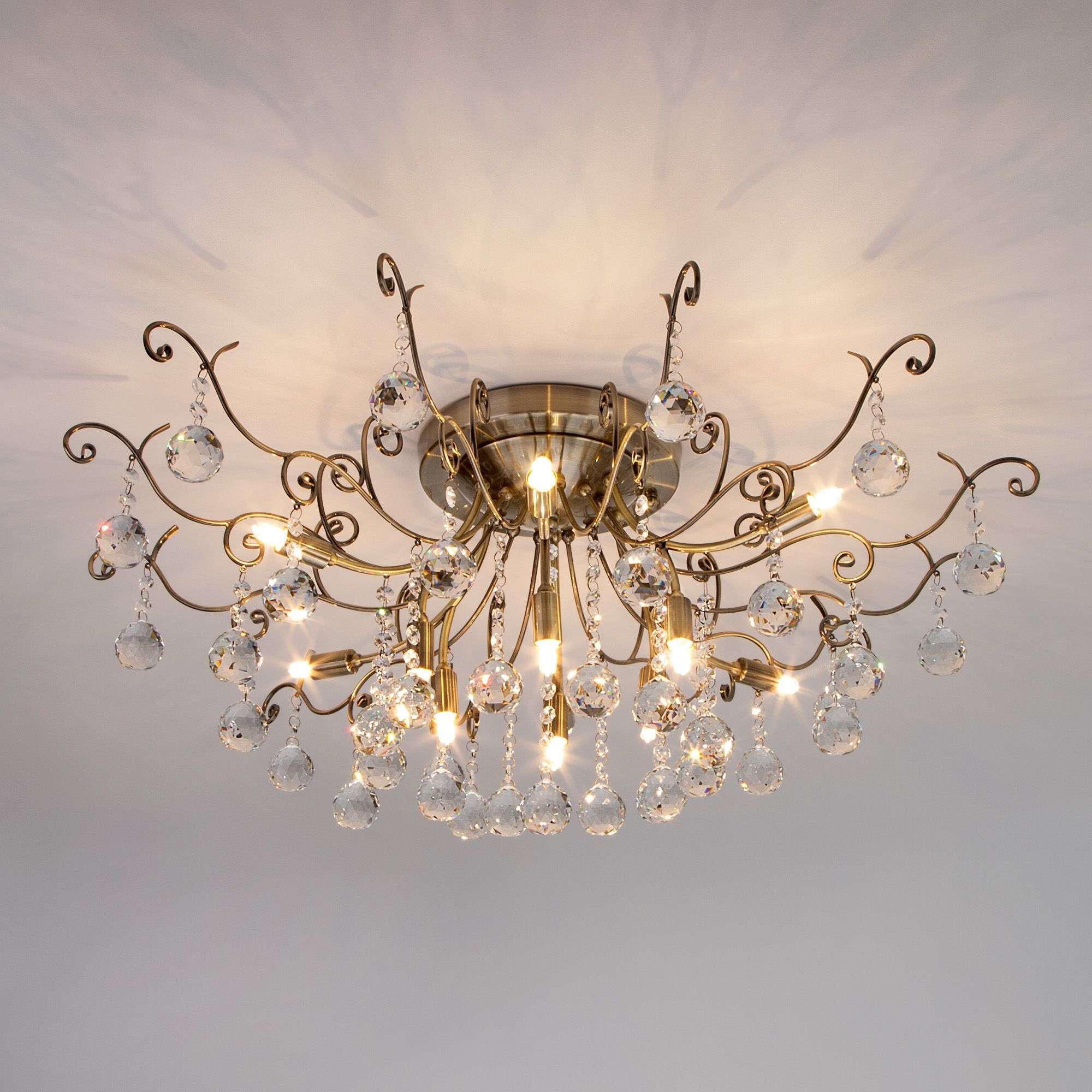 Выразительная хрустальная люстра на 12 рожков в цвете античная бронза преобразит потолочное пространство и создаст в вашем помещении полноценное освещение на площади 15 м кв.