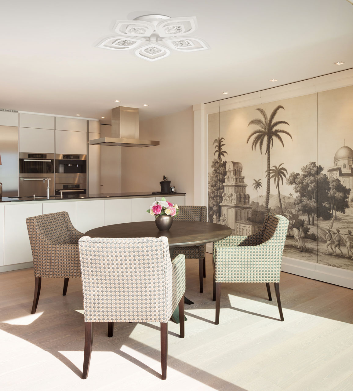 Изумительная модель 424014505 от немецкого производителя De Markt с серии Мадлен отлично подойдет для установки на потолок спальни , в светильнике испльзуется светодиодая лента , площадь освещения люстры 31 кв.м. Материал арматуры светильника металл , материал плафона акрил -белого цвета. Наличие ПДУ позволяет комфортно переключать режимы освещения . Данную модель всегда можете купить в интернет-магазине 220svet.