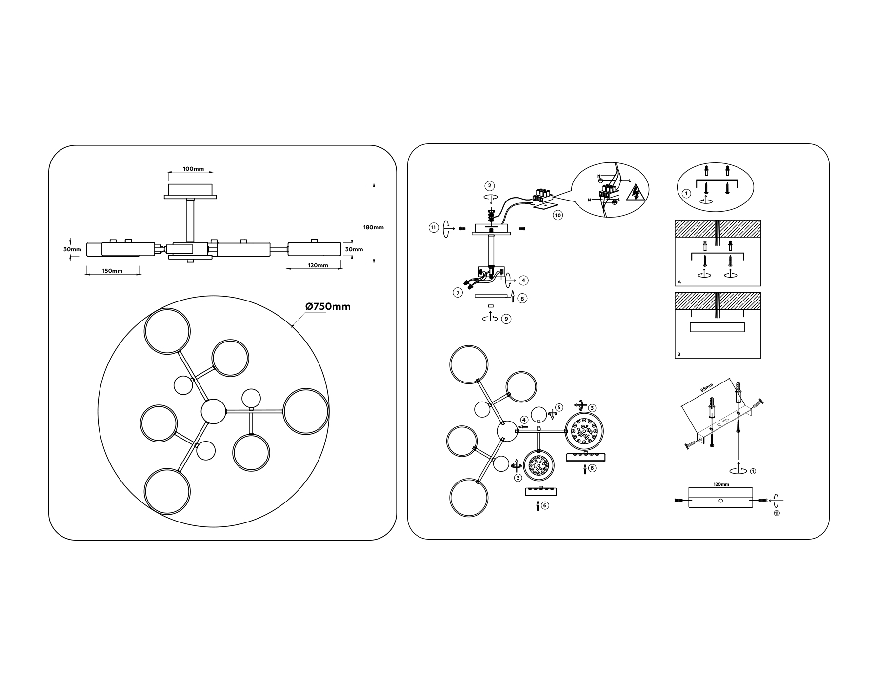 ?Способ крепления и установки люстры.