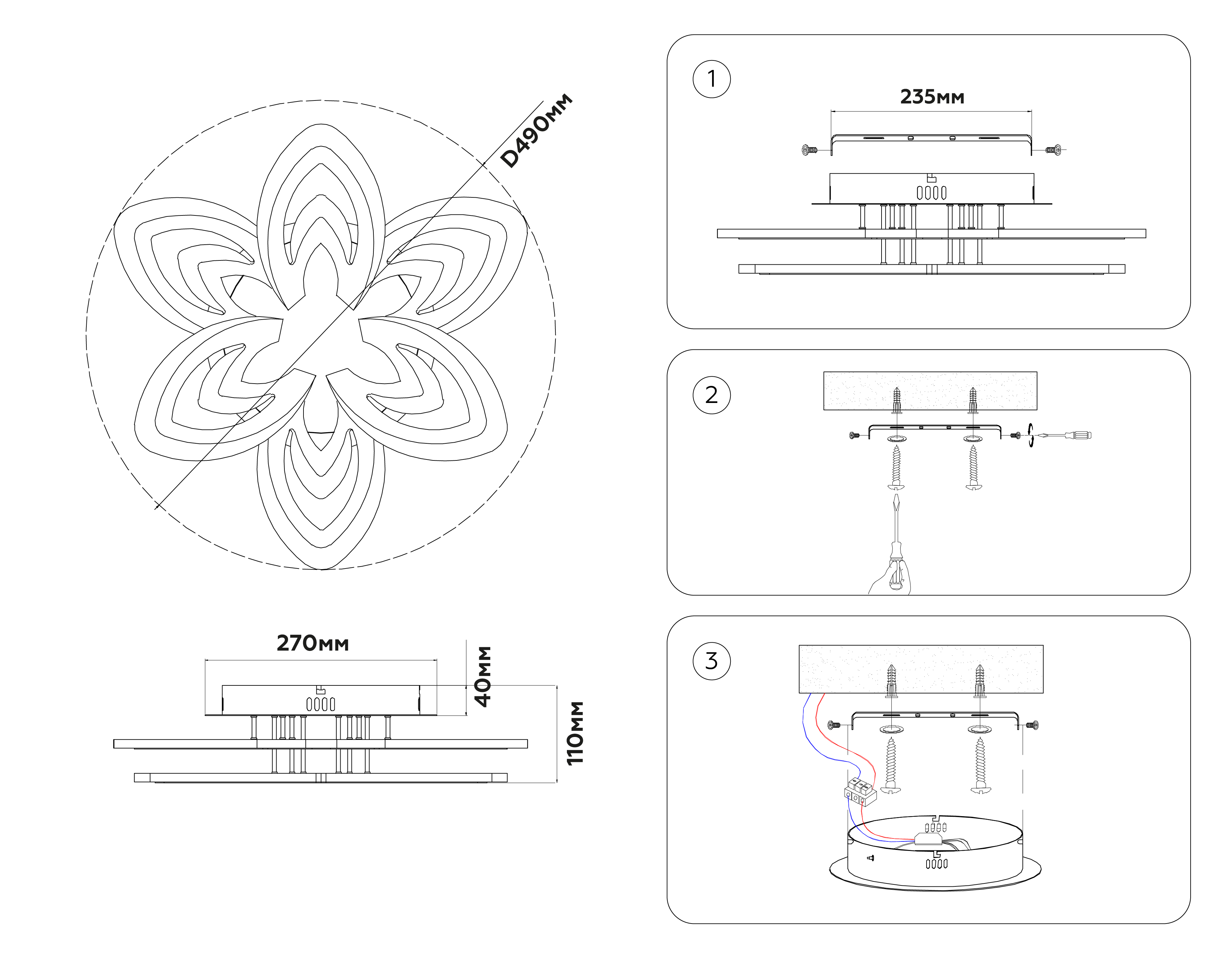 ?Способ крепления и установки люстры.