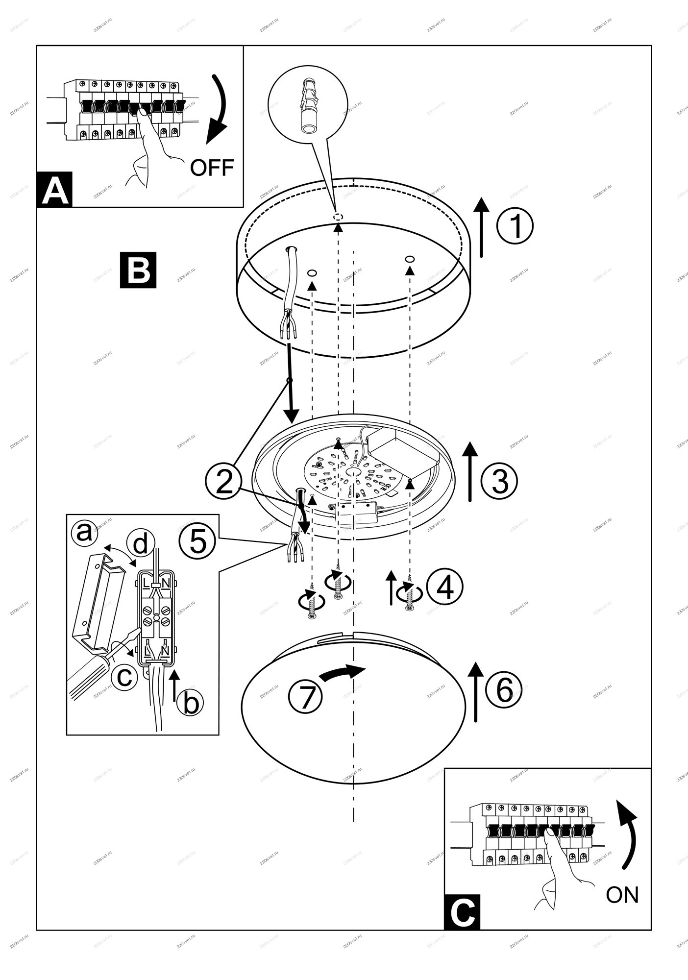 - Место установки: на потолок