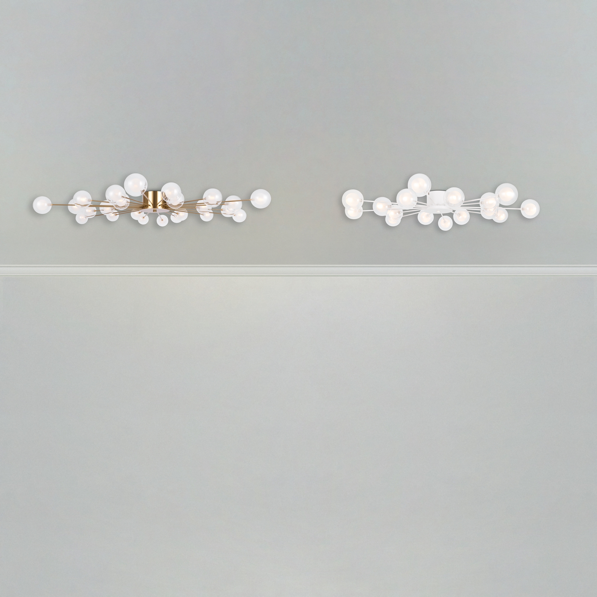 Celebrity ー это изобретательное произведение искусства. Источник света представлен двумя видами плафонов: двойное стекло и акриловое стекло в сочетании с латунной металлической окантовкой. Эти маленькие огоньки раскинуты по всей площади светильника и создают ощущение, что в вашей квартире есть свое небольшое звёздное небо. Плафоны расположены на концах арматур, которые по кругу выходят из цилиндра в центре. Материал плафонов: стекло, акрил. Цвета арматуры: черный и золото.