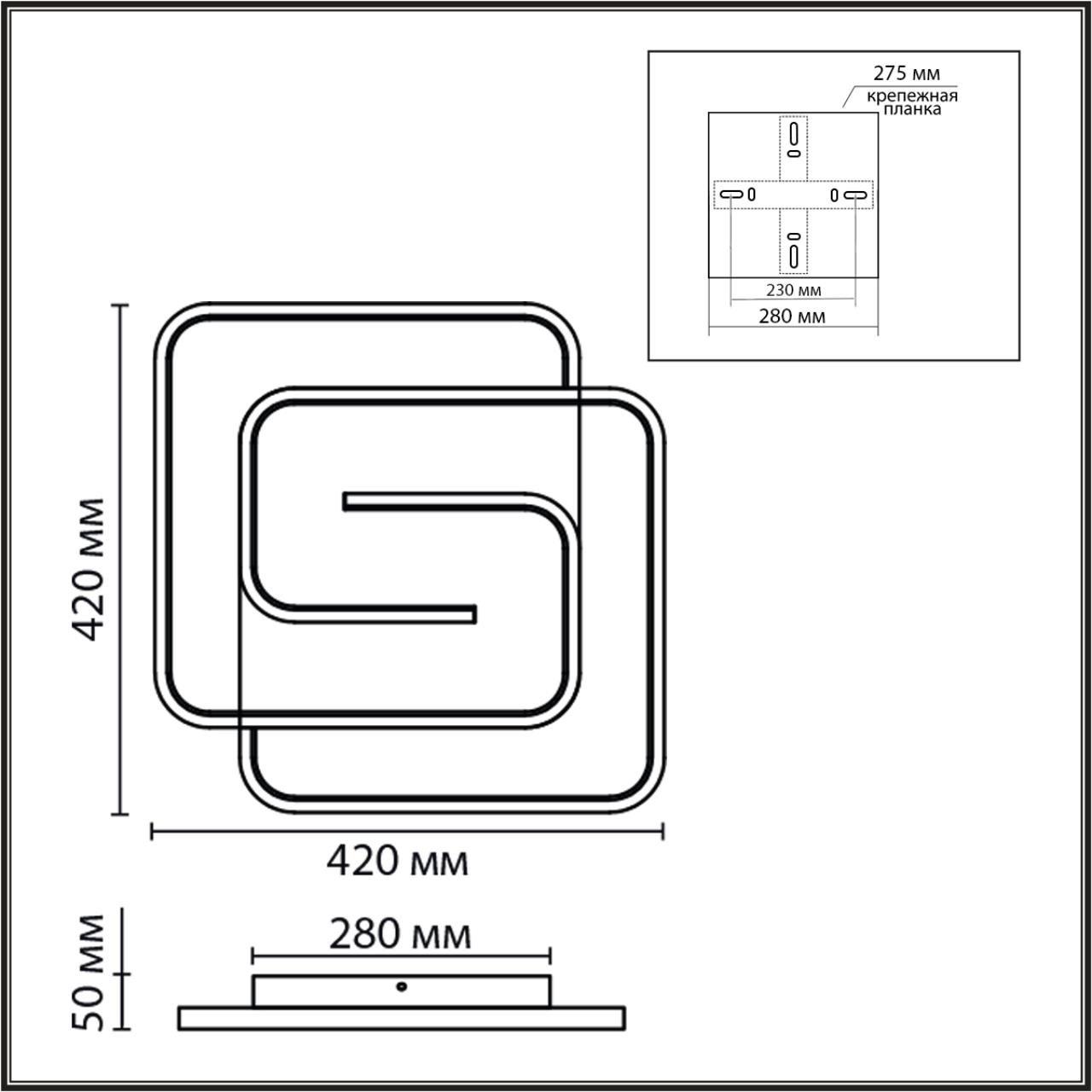 - Форма плафона: Прямоугольный