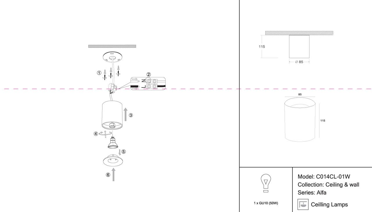 - Место установки: на потолок