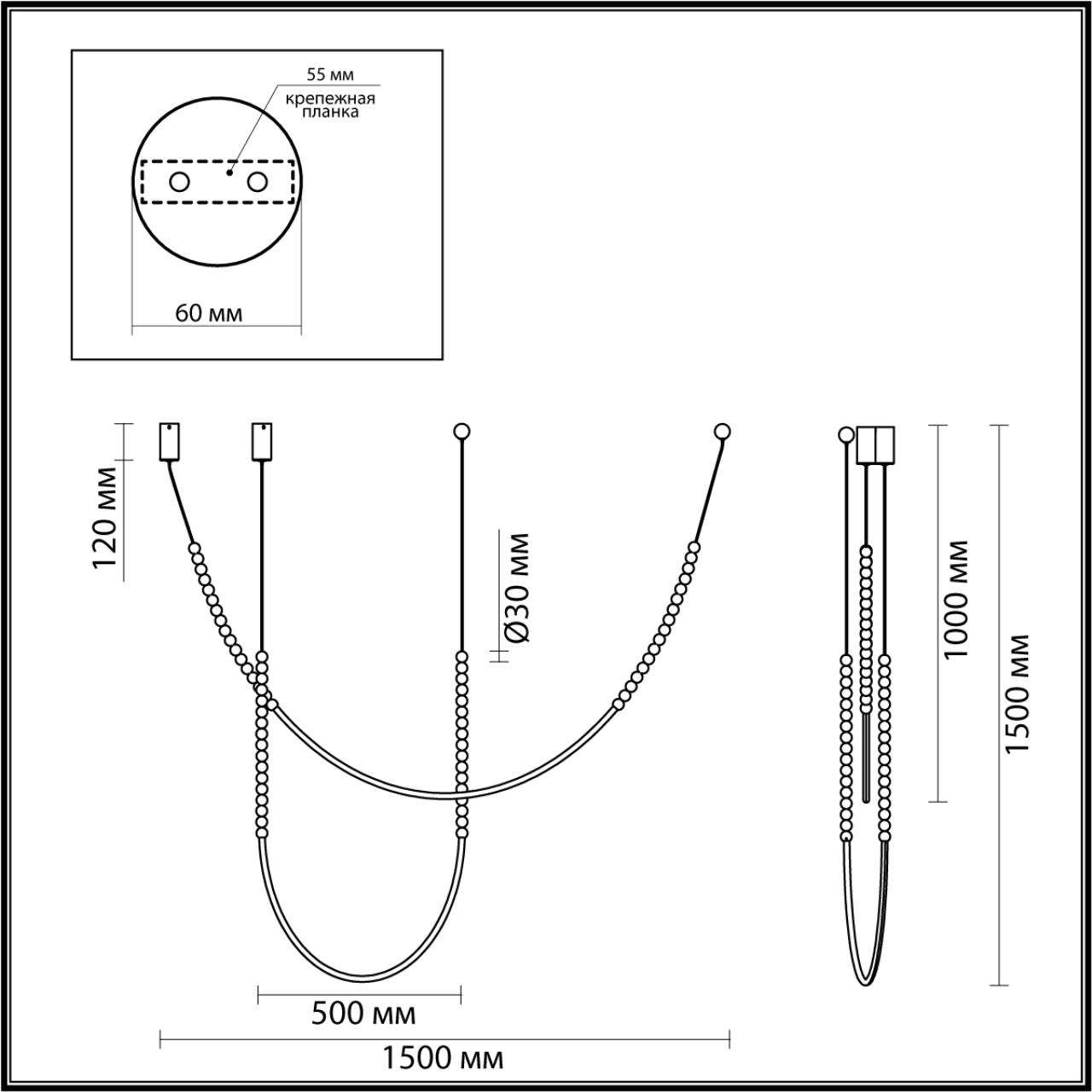 Monella - оригинальная форма большой серии светильников в легком игривом дизайне с использованием белых полированных шариков из акрила. Благодаря универсальности белого цвета линия впишется в любую стилистику и любую цветовую гамму интерьера. В светильнике в комплект входят две нити.