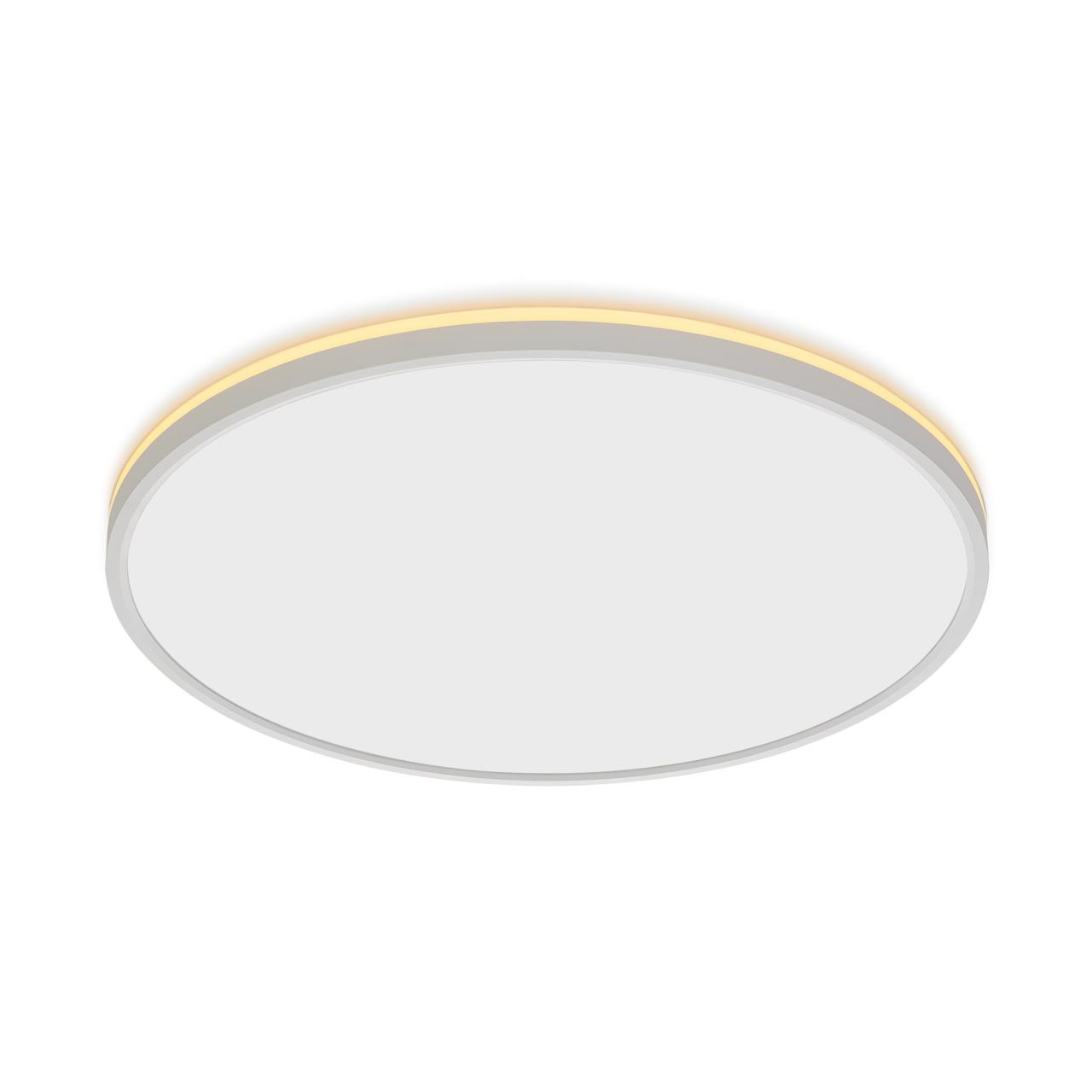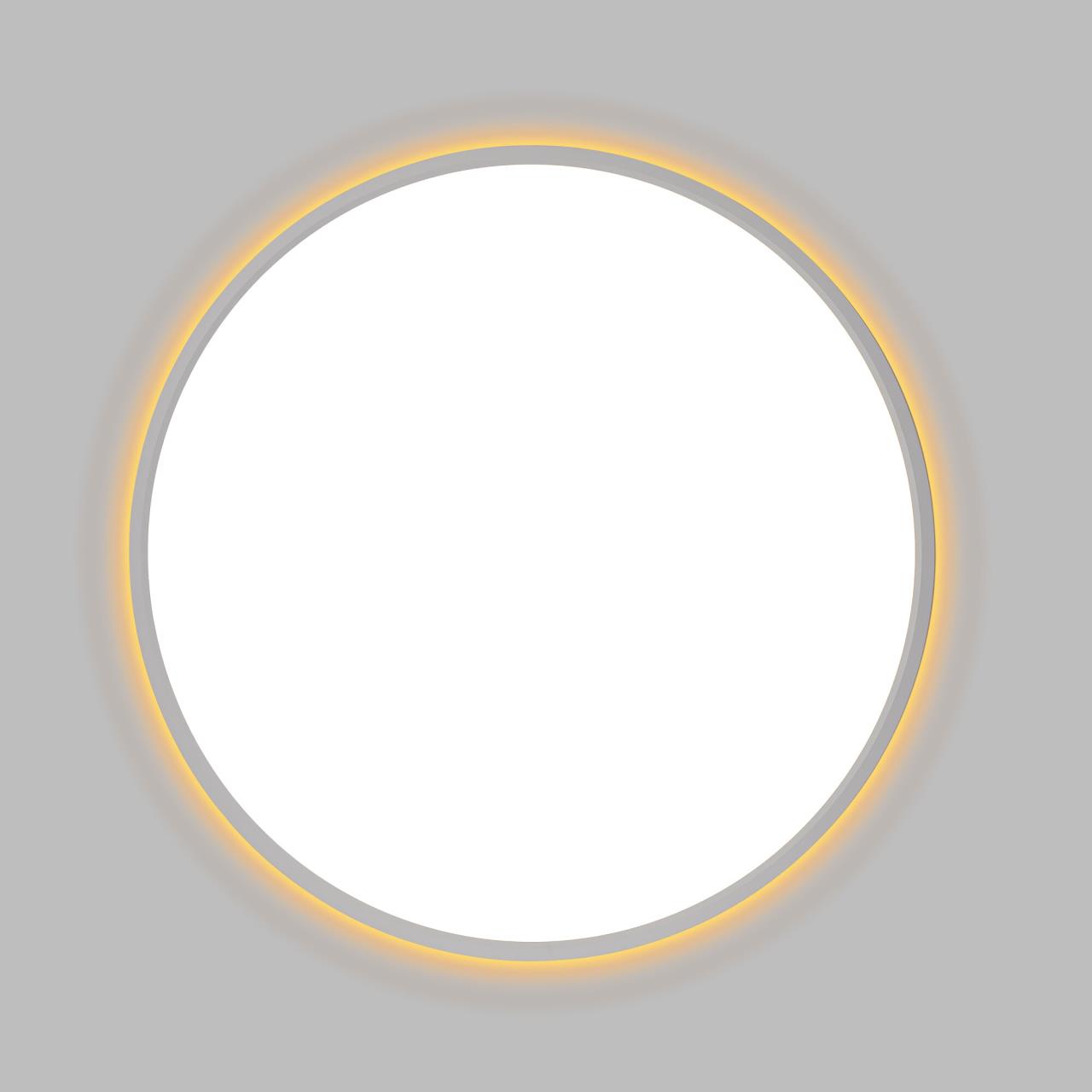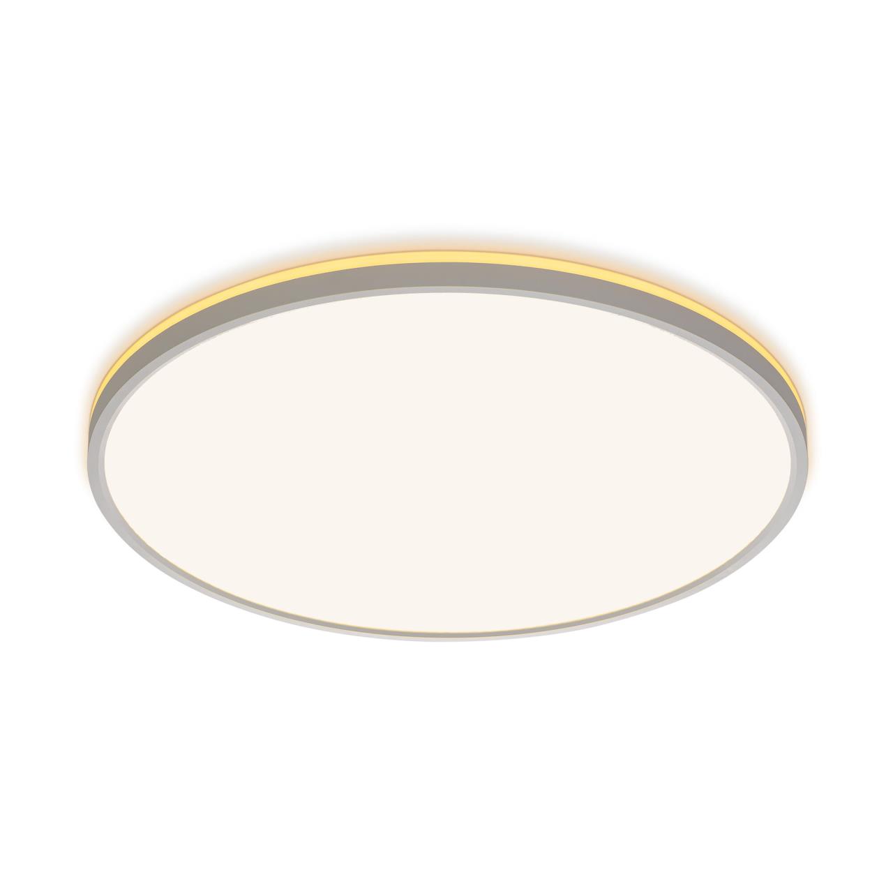 Изделие обладает высокой энергоэффективностью основного света – 120Лм/Вт, осветит до 20м². Мощность: основной свет - 40Вт, потолочная подсветка - 10Вт. Диаметр 50см, высота 2,5см. Свет безопасный для глаз, без мерцания и пульсаций. Тип крепления – удобная монтажная платформа.
