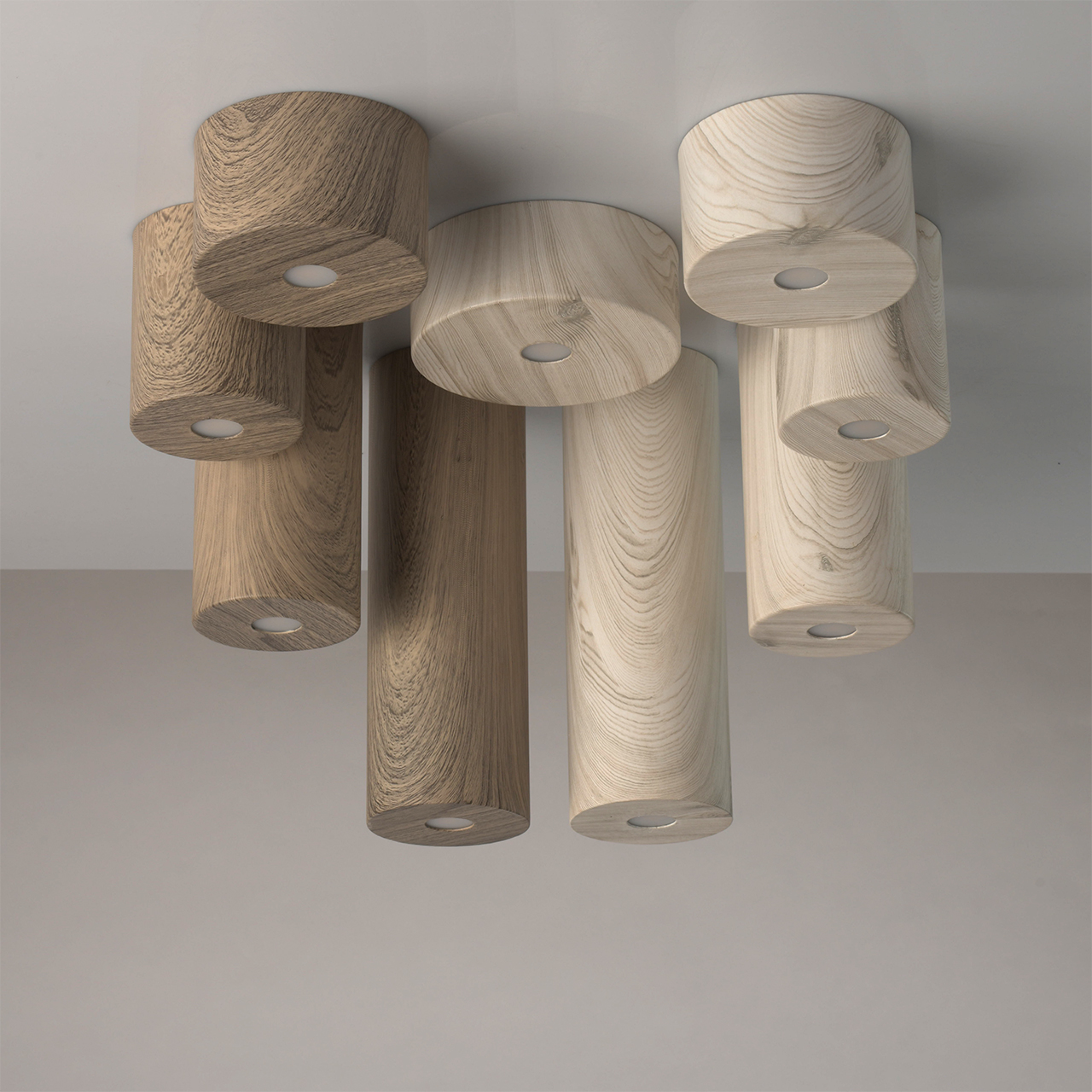 Стильный потолочный светильник прекрасно подойдет для создания точечной направленной подсветки в интерьерах с различным стилевым решением: от минимализма до эко-стилистики. Основание и плафон выполнены из металла и декорированы оригинальным рисунком, имитирующим фактуру натурального дерева. Есть две цветовые вариации - оттенка светлого и темного дерева, а значит, можно подобрать модель, идеально подходящую интерьеру по цветовой палитре. Источники света-светодиоды скрыты под вставкой из матового акрила. Широкая семья позволяет использовать светильники в комплексе, комбинируя их по высоте и цвету, благодаря чему можно создать по-настоящему эффектную подсветку.