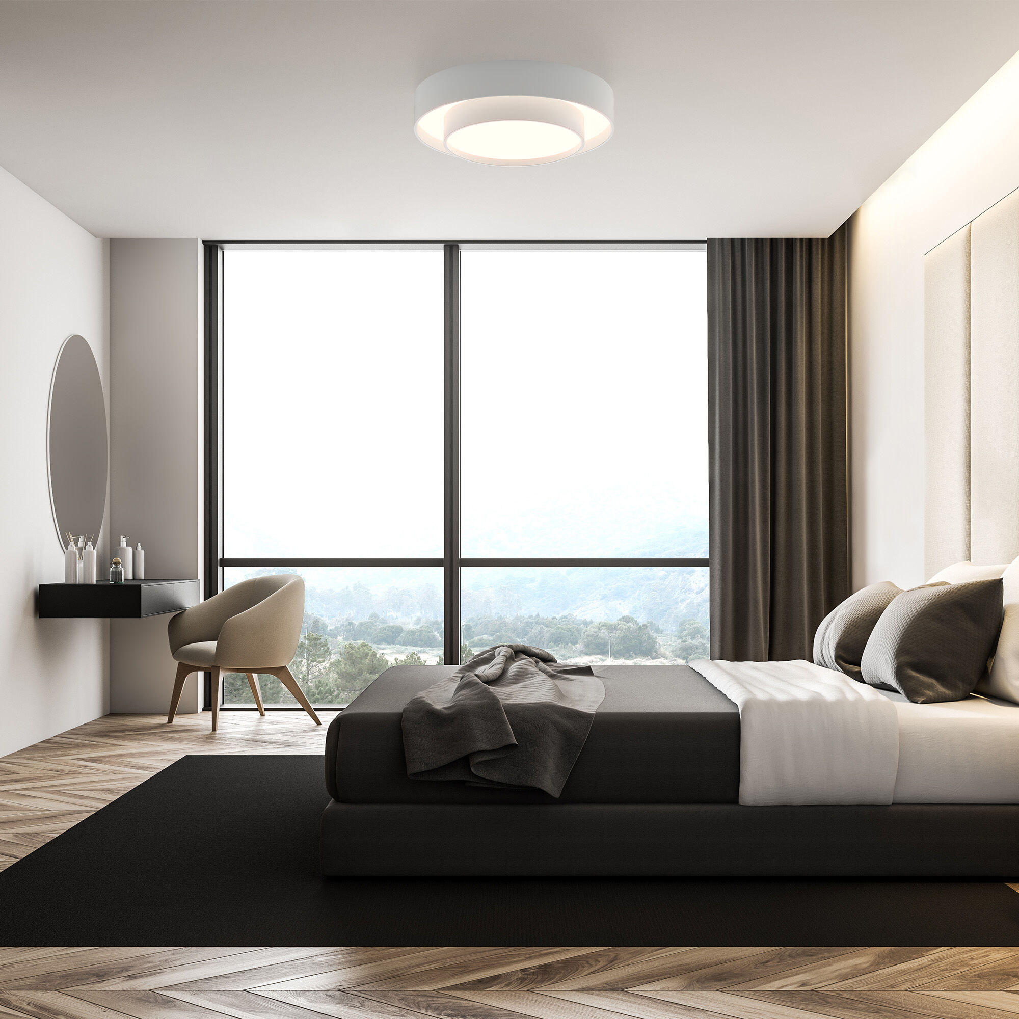 Серия Force — это символ целостности и непрерывности, отраженный в сочетании двух сферических элементов разной высоты. Светильник имеет запоминающийся геометрический образ, динамичный, но в то же время утонченный. Возможность регулировки цветовой температуры делает эту модель идеальной для современных интерьеров спален, гостиных, детских. Коллекция представляет собой функциональное решение для создания основного освещения.
