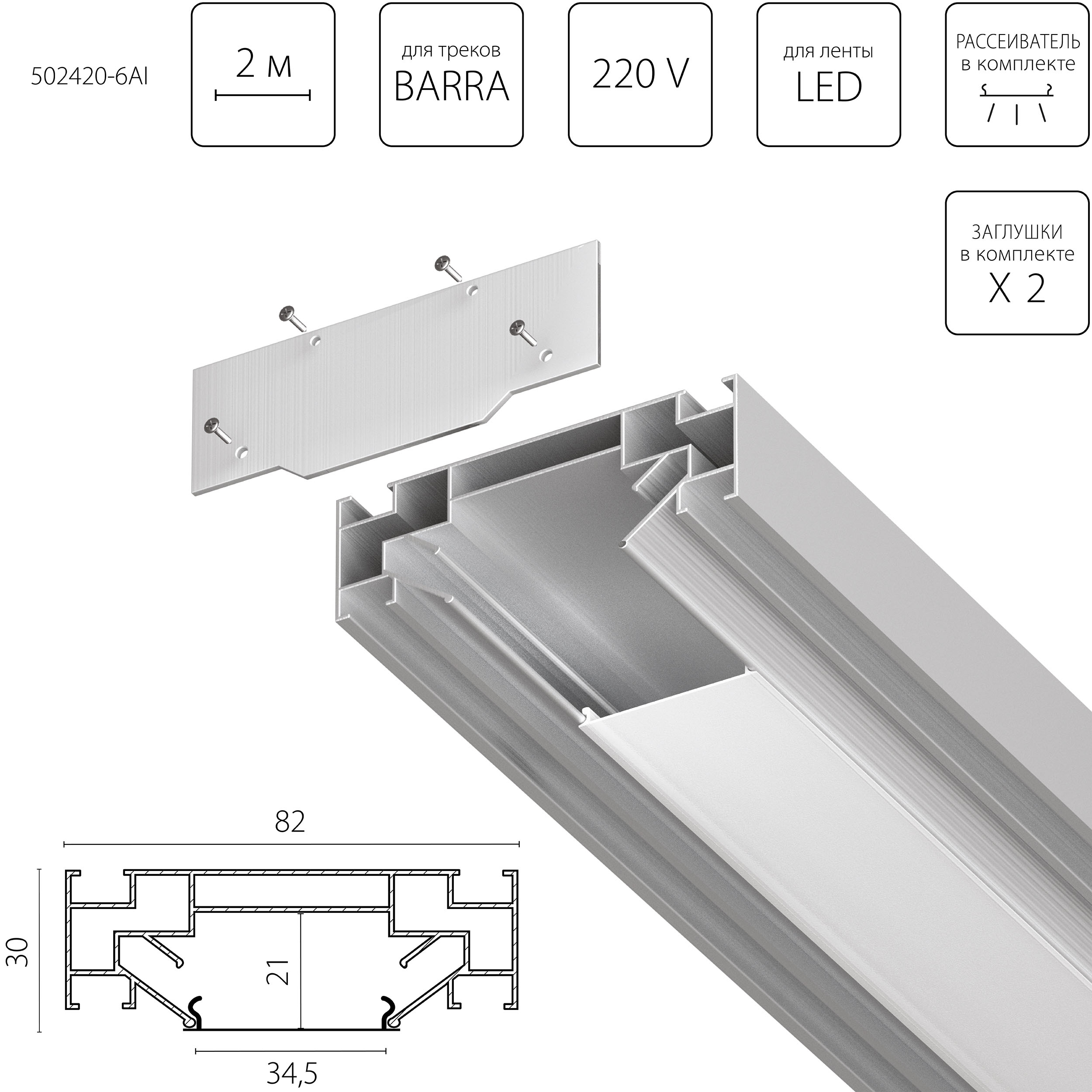 Профиль встраиваемый в натяжной потолок под LED ленту Lightstar Barra Base 502420-6AI в Череповце