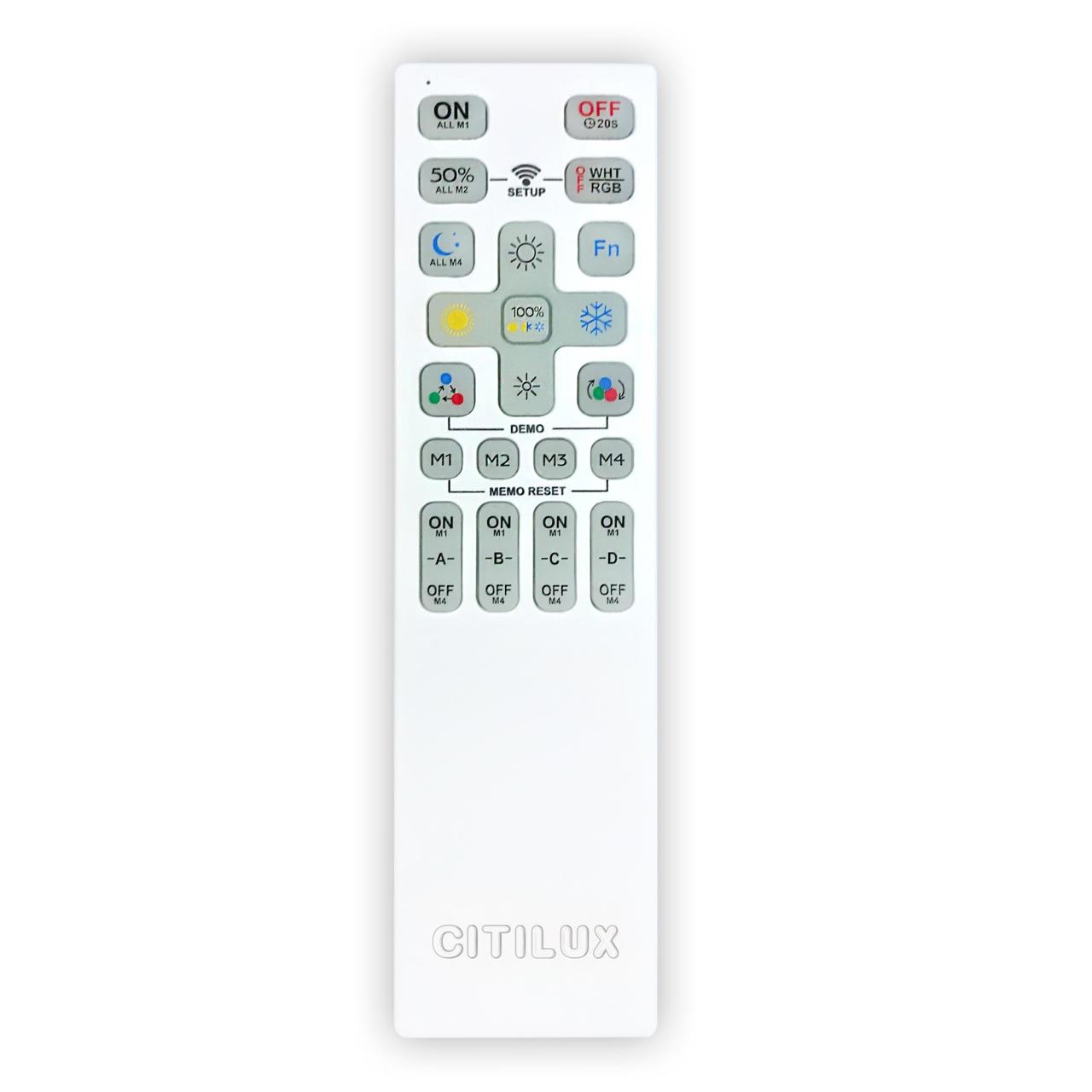 Пульт CLR5G от производителя Citilux принадлежит серии Remote предназначен для дистанционного управления светодиодными светильниками Citilux, имеющими артикул CLхххAxx или CLхххBxx. Корпус изготовлен из белого противоударного полимера, кнопки из светоаккумулирующего полимера (в темноте светятся). * Внимание: Пульт ДУ универсальный, подходит для совместимых светильников Citilux, как с версией прошивки F1.0 так и F2.0. Информацию о прошивке можно найти на упаковке (наклейка рядом со штрихкодом) или на маркировке драйвера , страна бренда Дания.Купить модель CLR5G спешите в интернет-магазине 220svet.